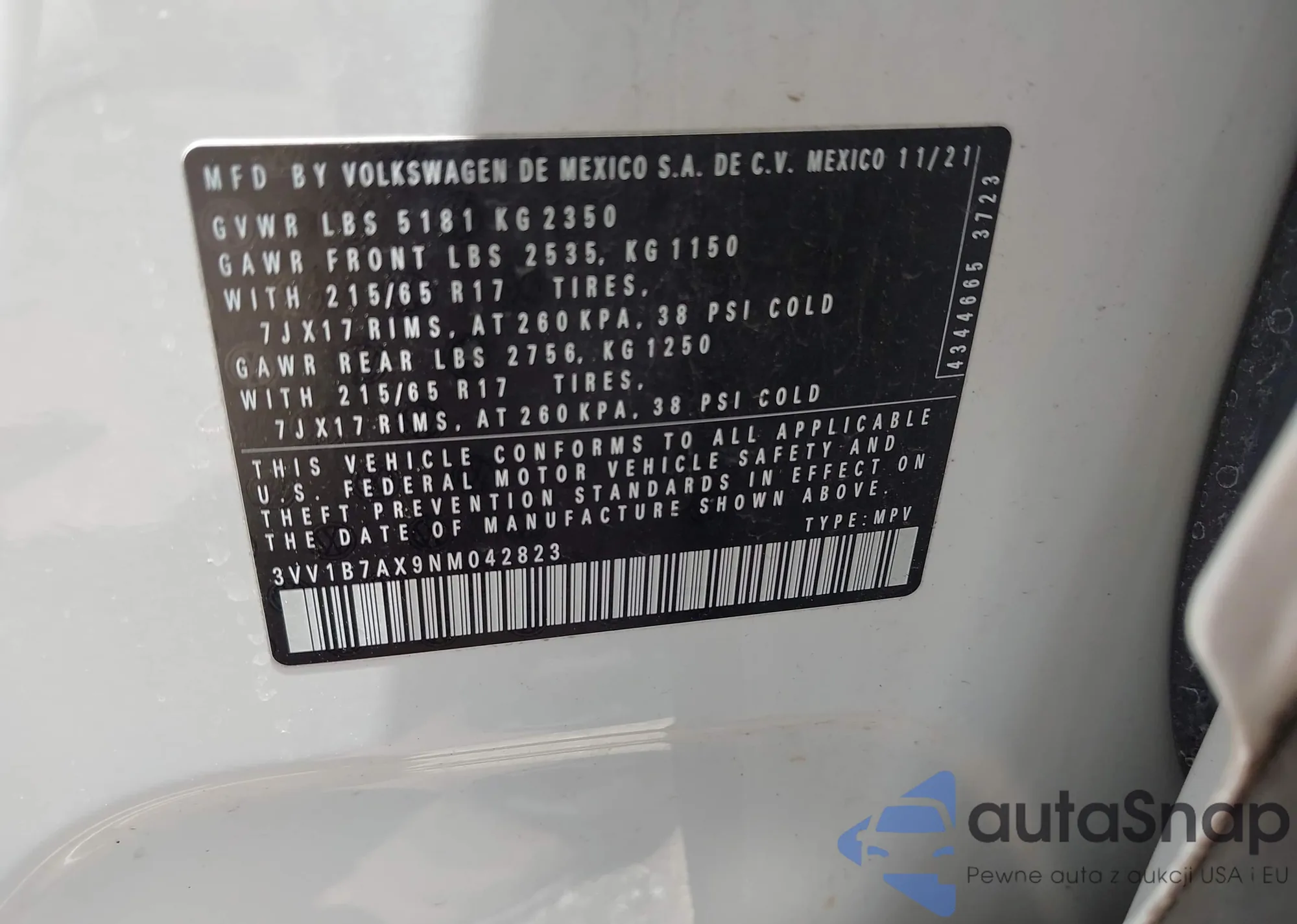 • VIN 3VV1B7AX9NM042823