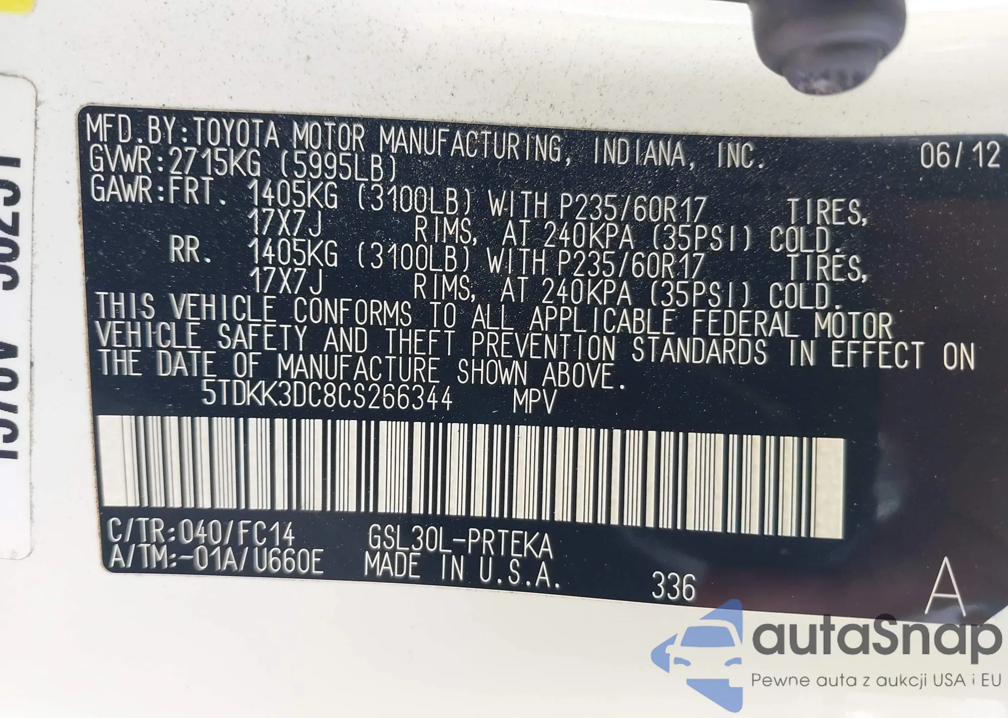 • VIN 5TDKK3DC8CS266344