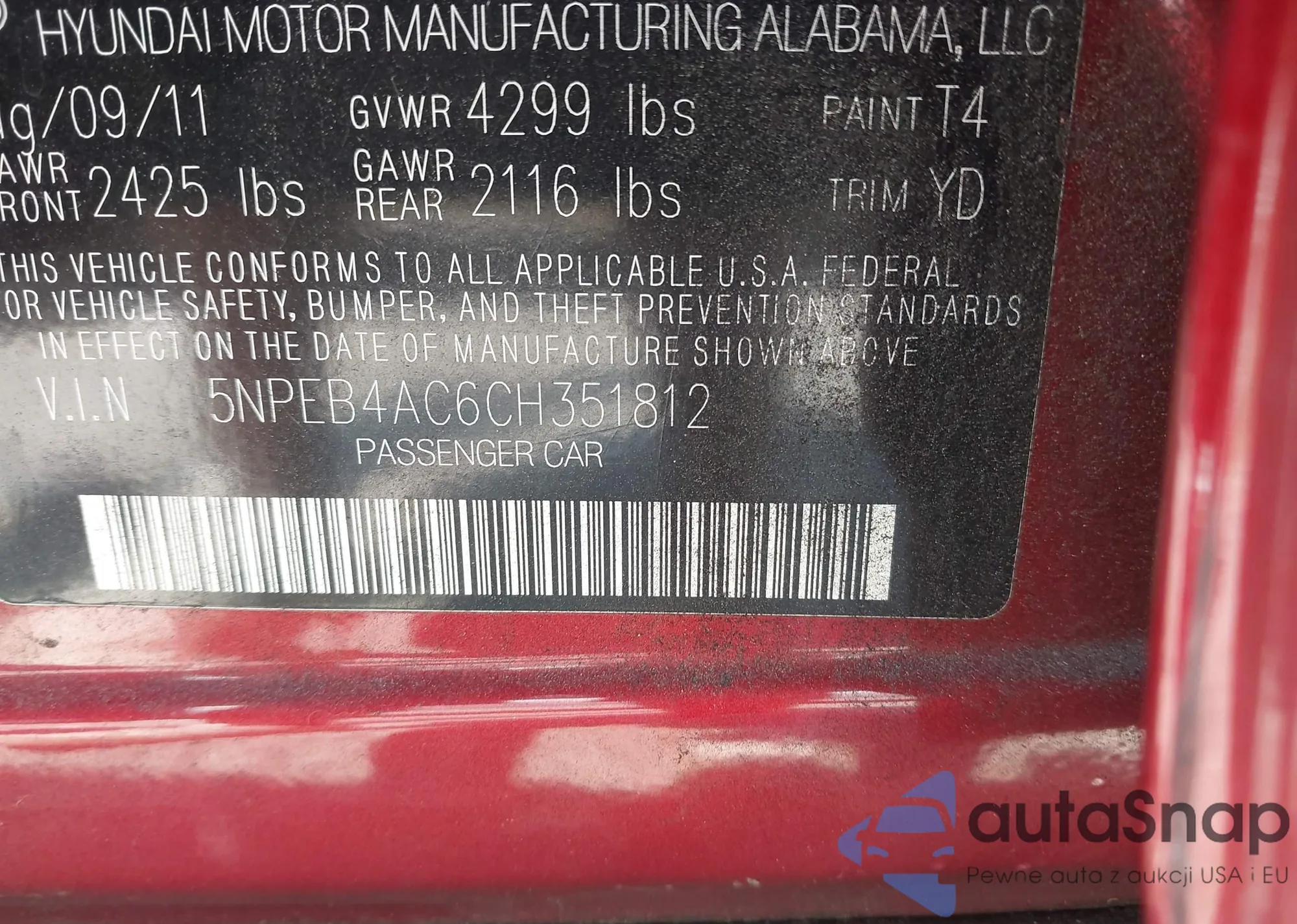 LOT: 42577497 VIN: 5NPEB4AC6CH351812
