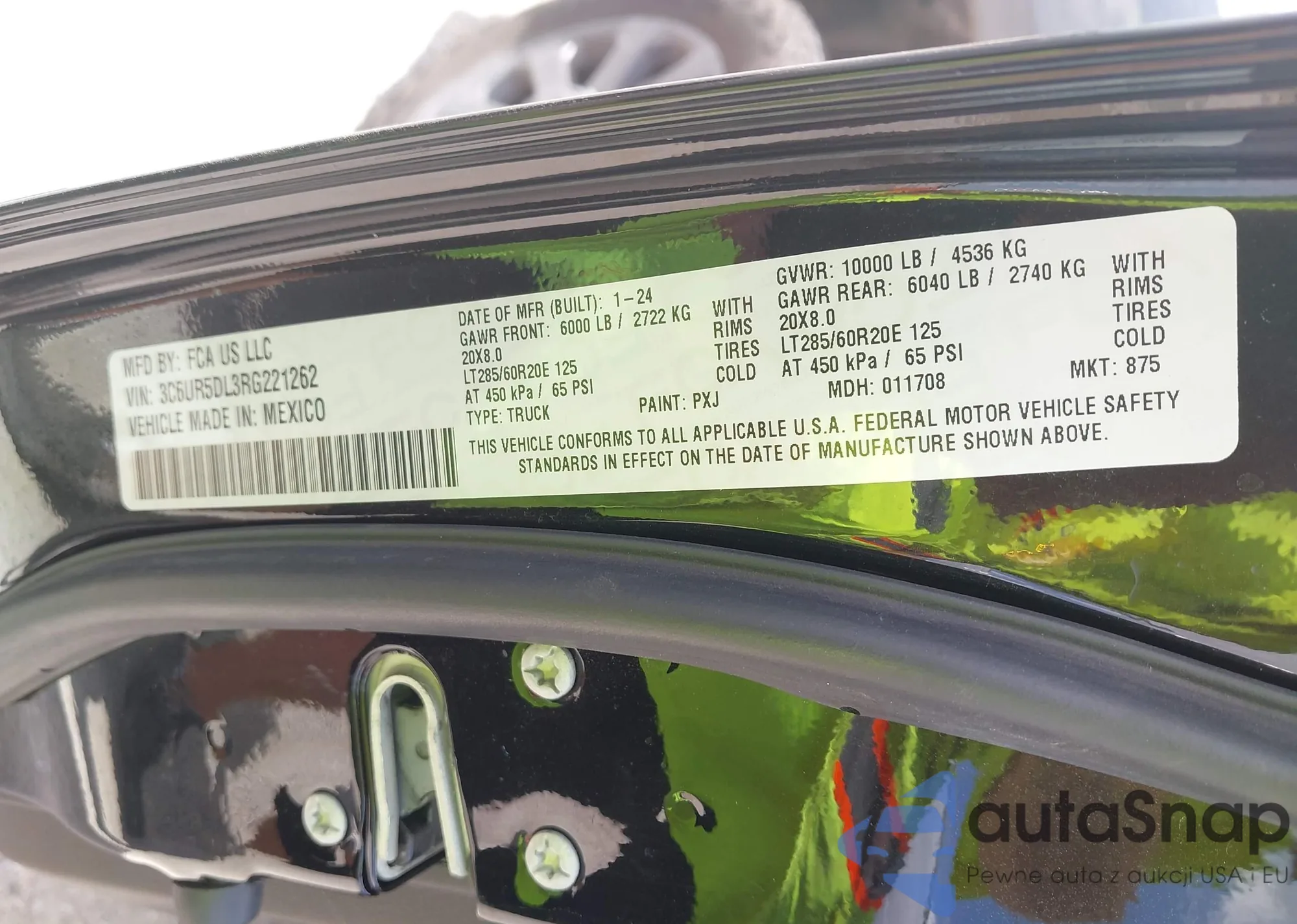 • VIN 3C6UR5DL3RG221262