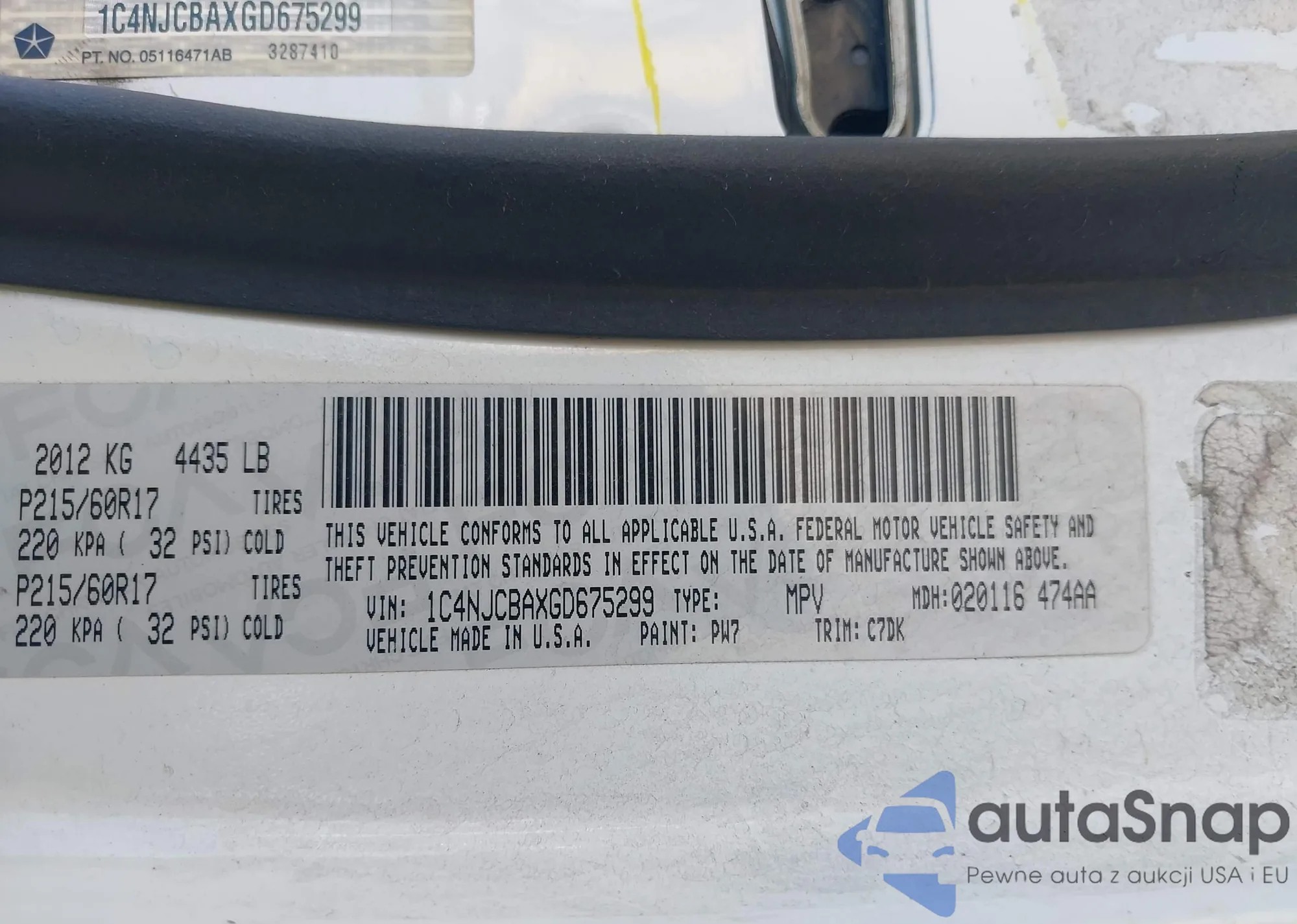 • VIN 1C4NJCBAXGD675299