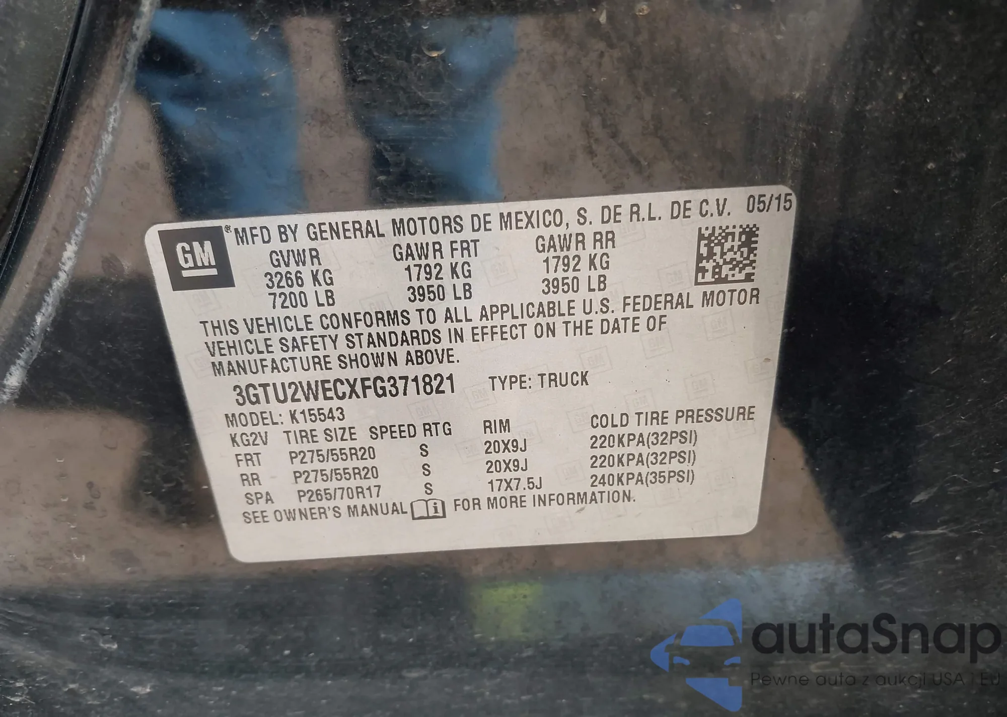 • VIN 3GTU2WECXFG371821