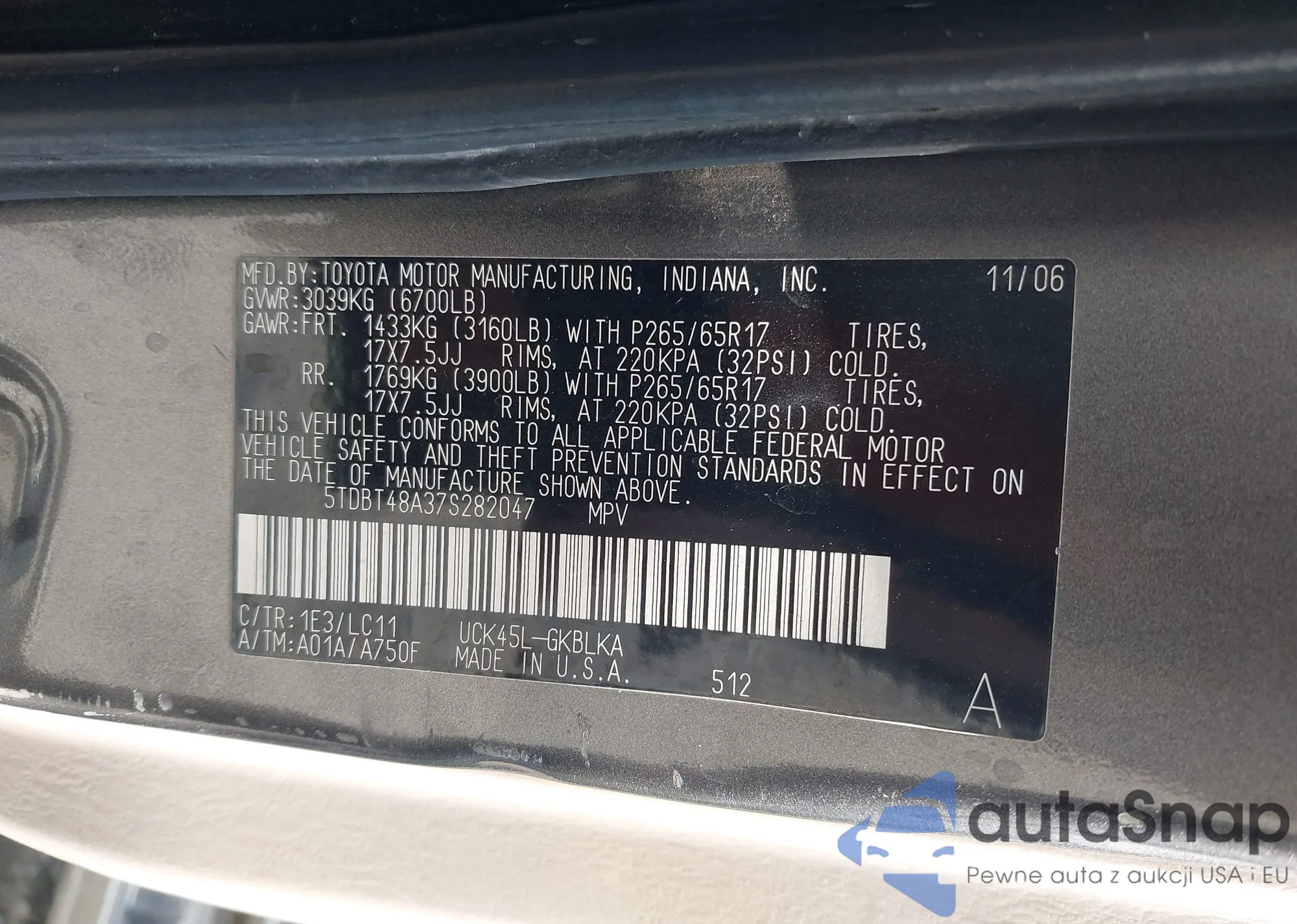 • VIN 5TDBT48A37S282047