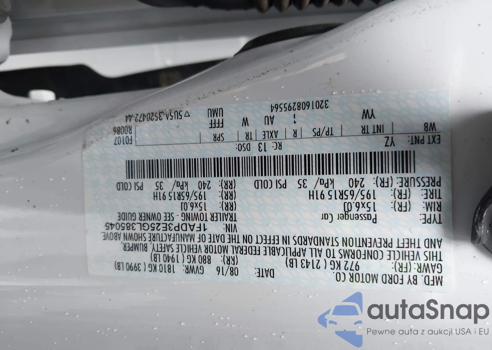 • VIN 1FADP3E25GL385045