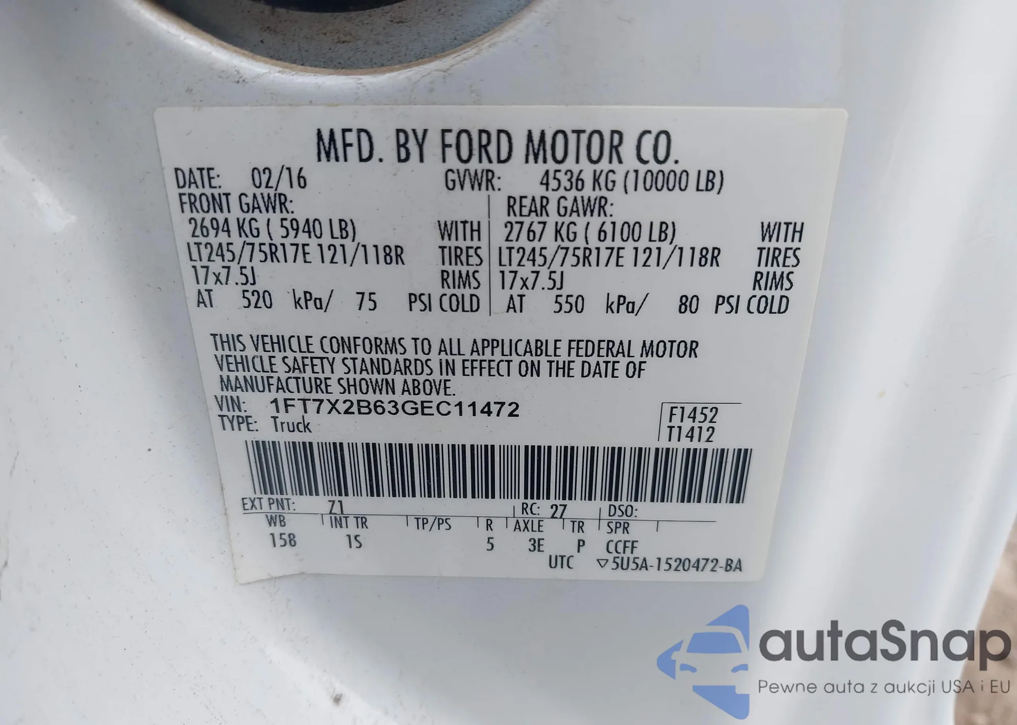 • VIN 1FT7X2B63GEC11472