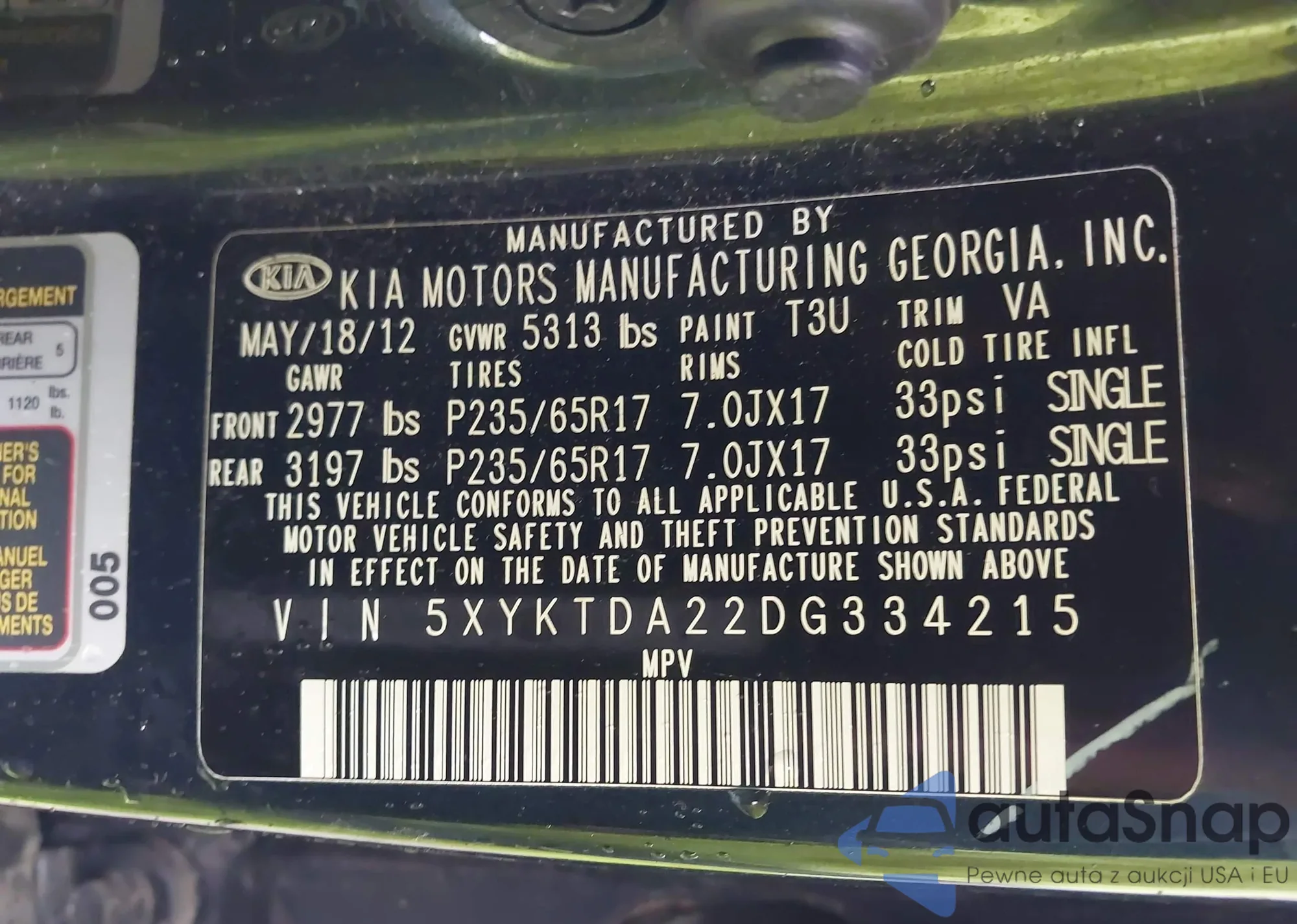 • VIN 5XYKTDA22DG334215