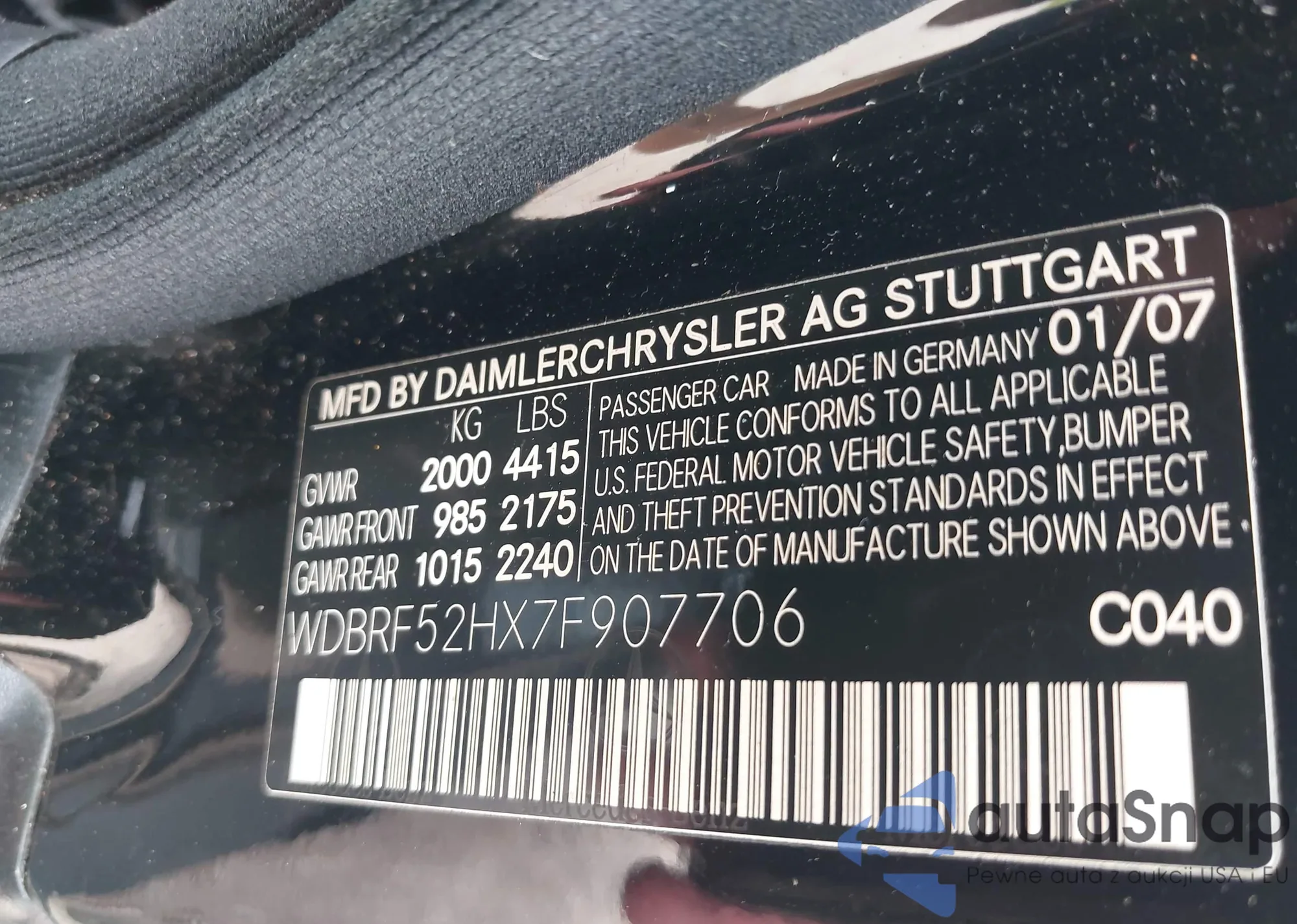 • VIN WDBRF52HX7F907706