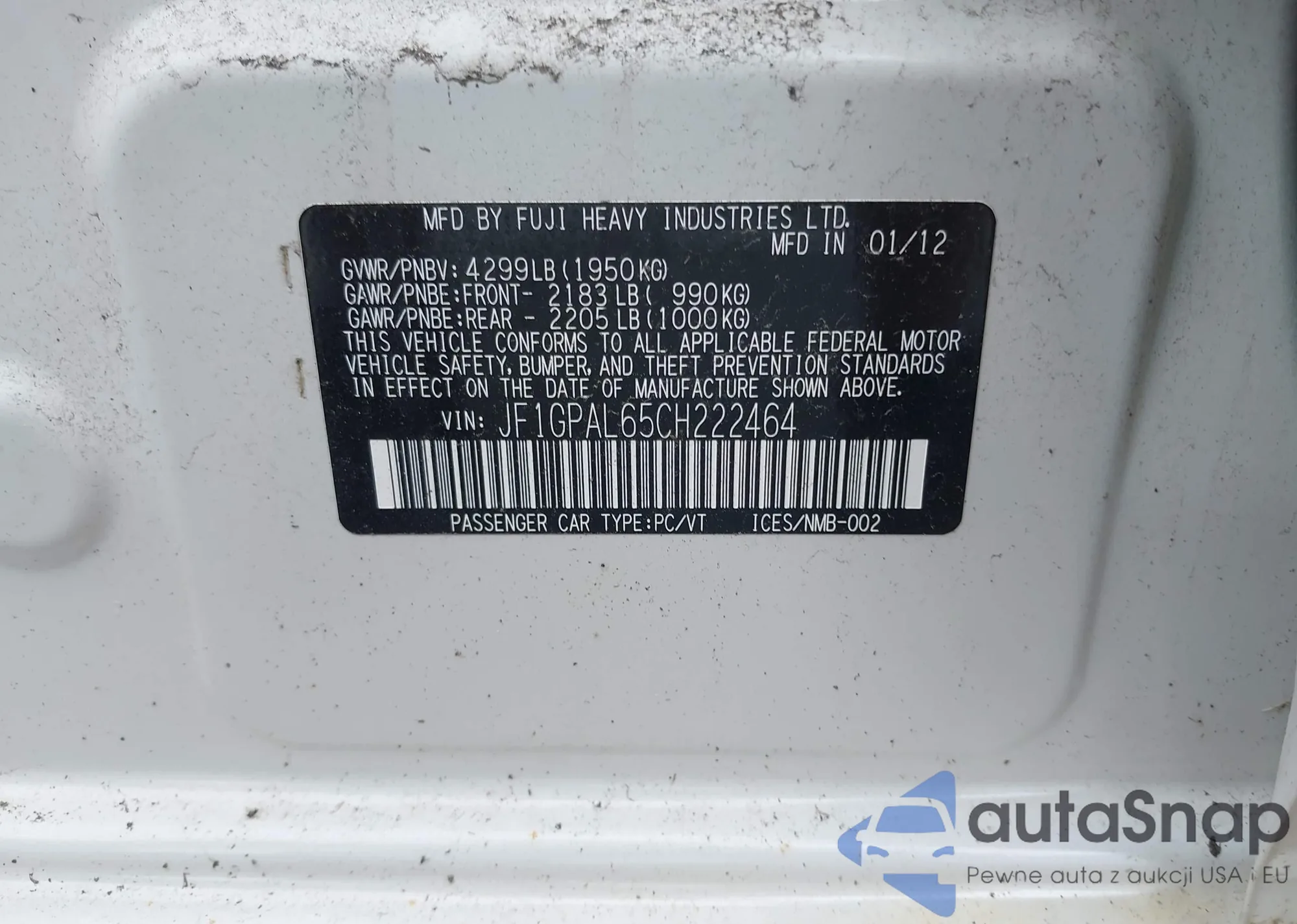 • VIN JF1GPAL65CH222464