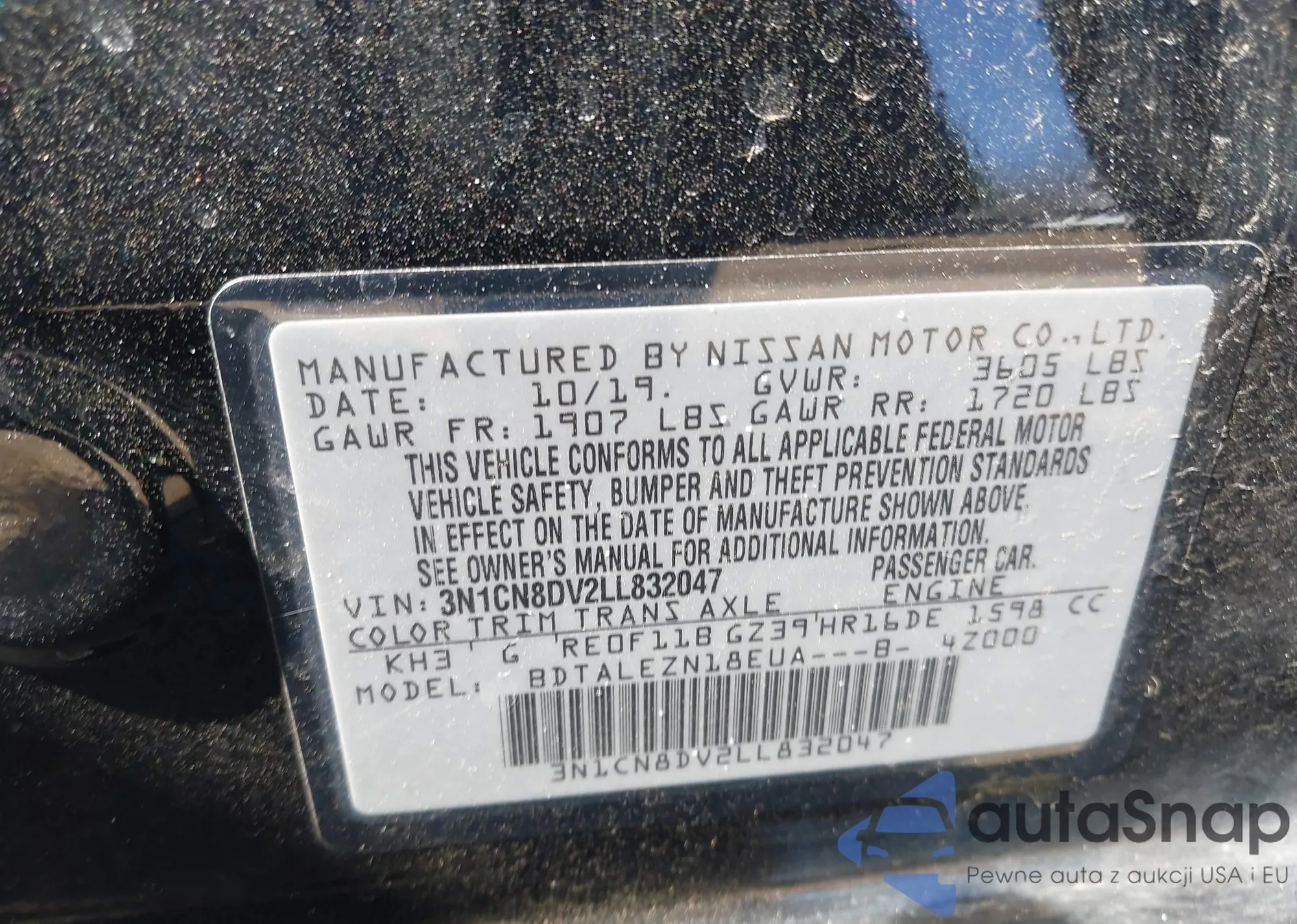 • VIN 3N1CN8DV2LL832047