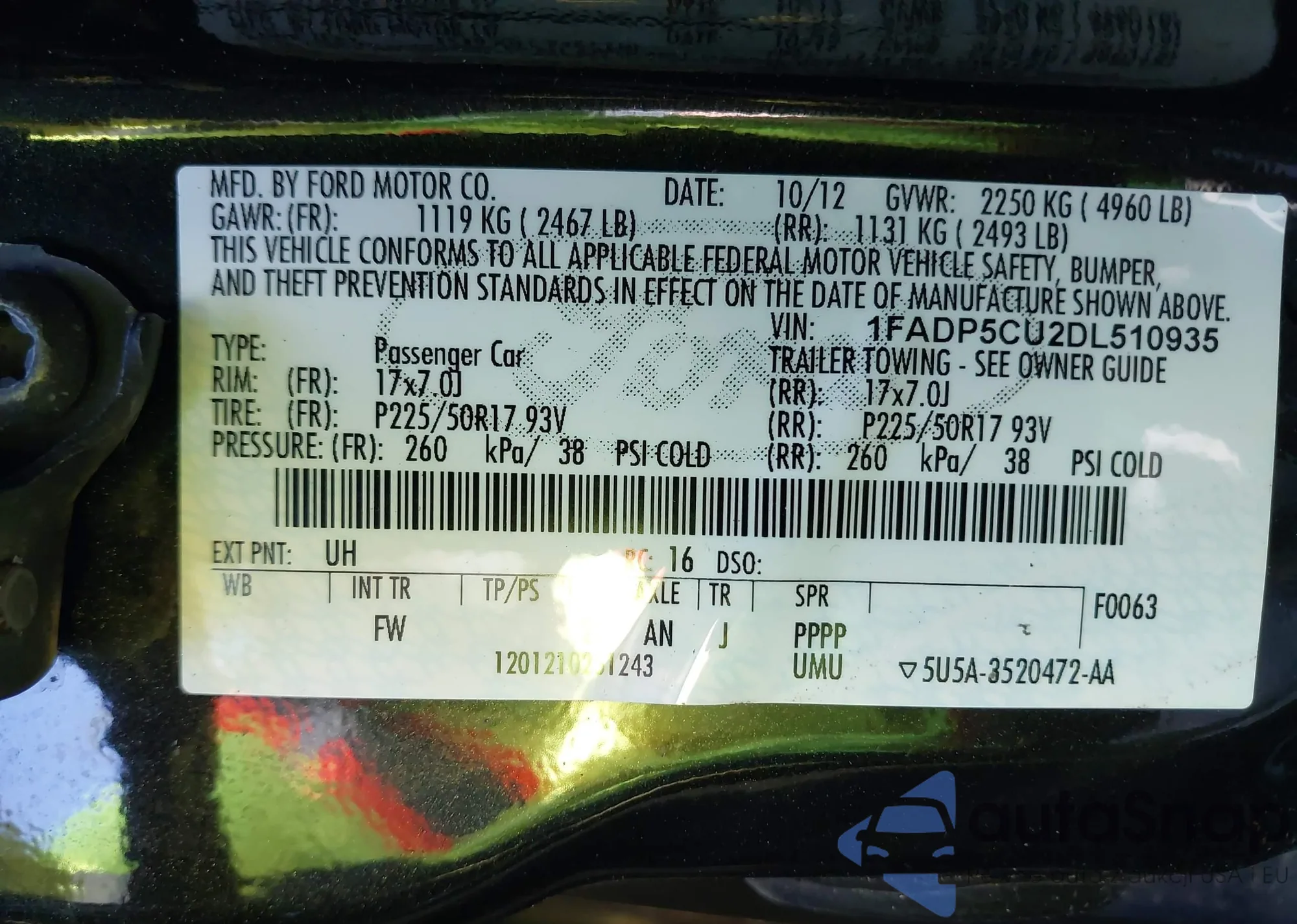 • VIN 1FADP5CU2DL510935