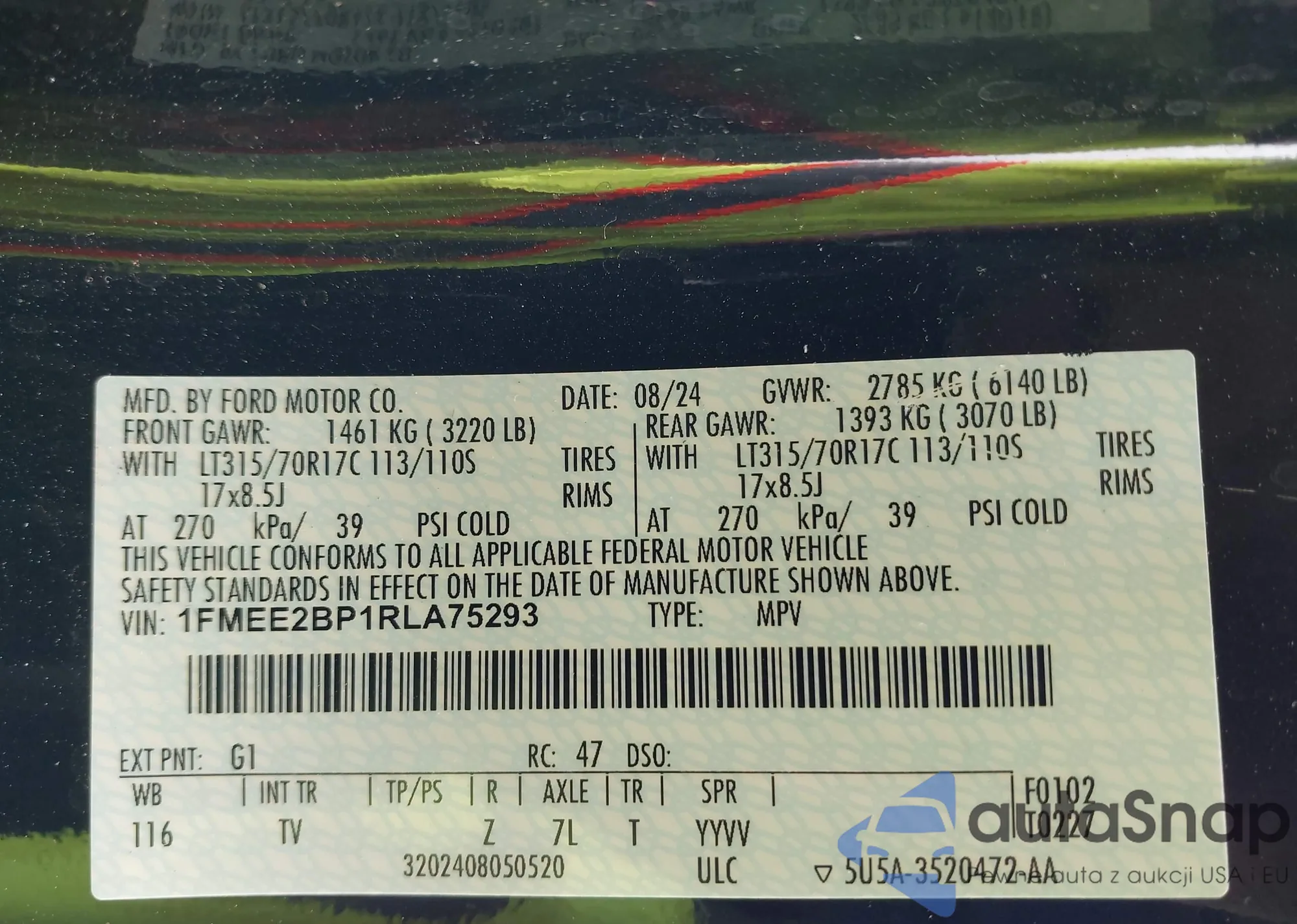 LOT: 42199529 VIN: 1FMEE2BP1RLA75293