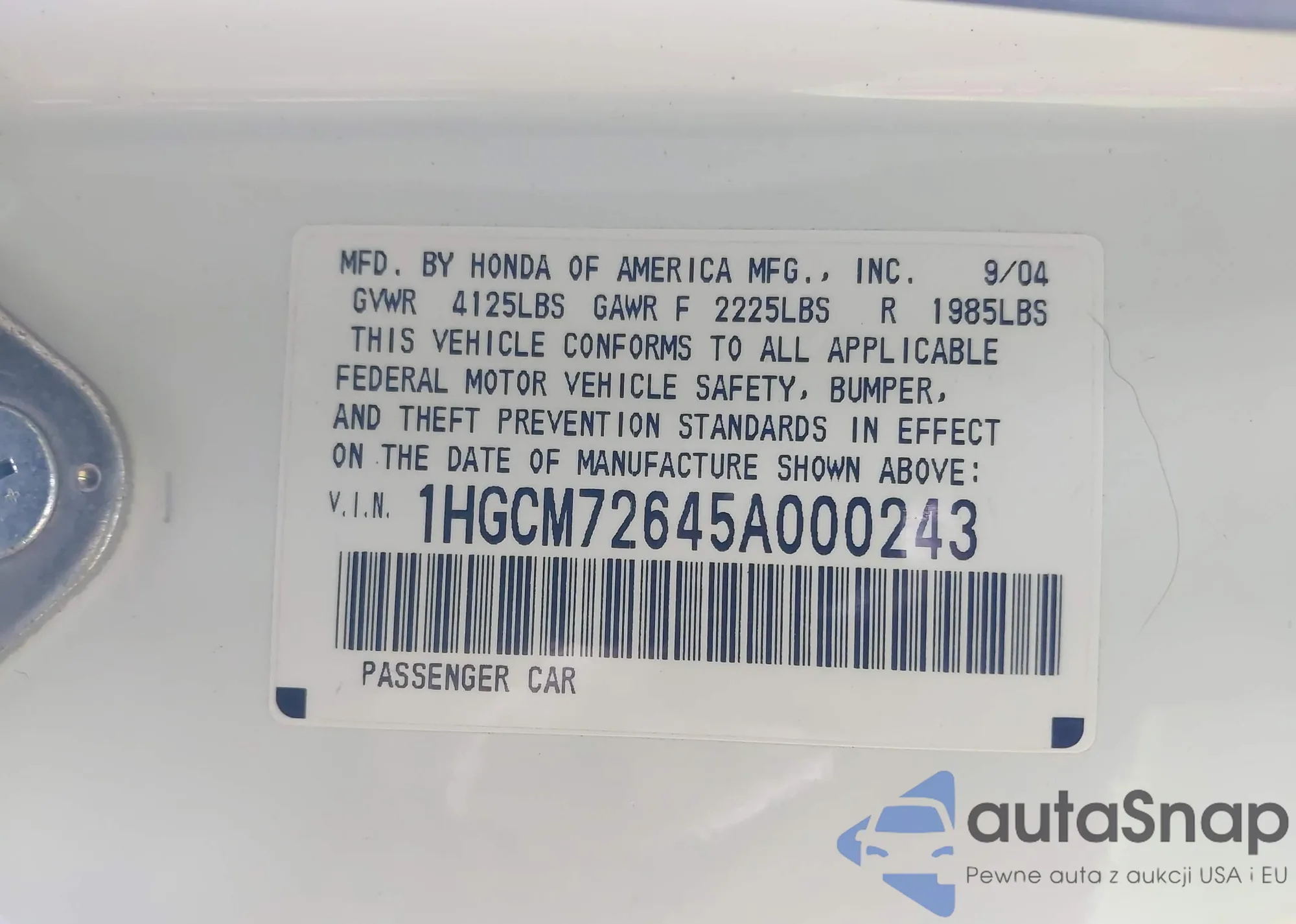 LOT: 41709705 VIN: 1HGCM72645A000243