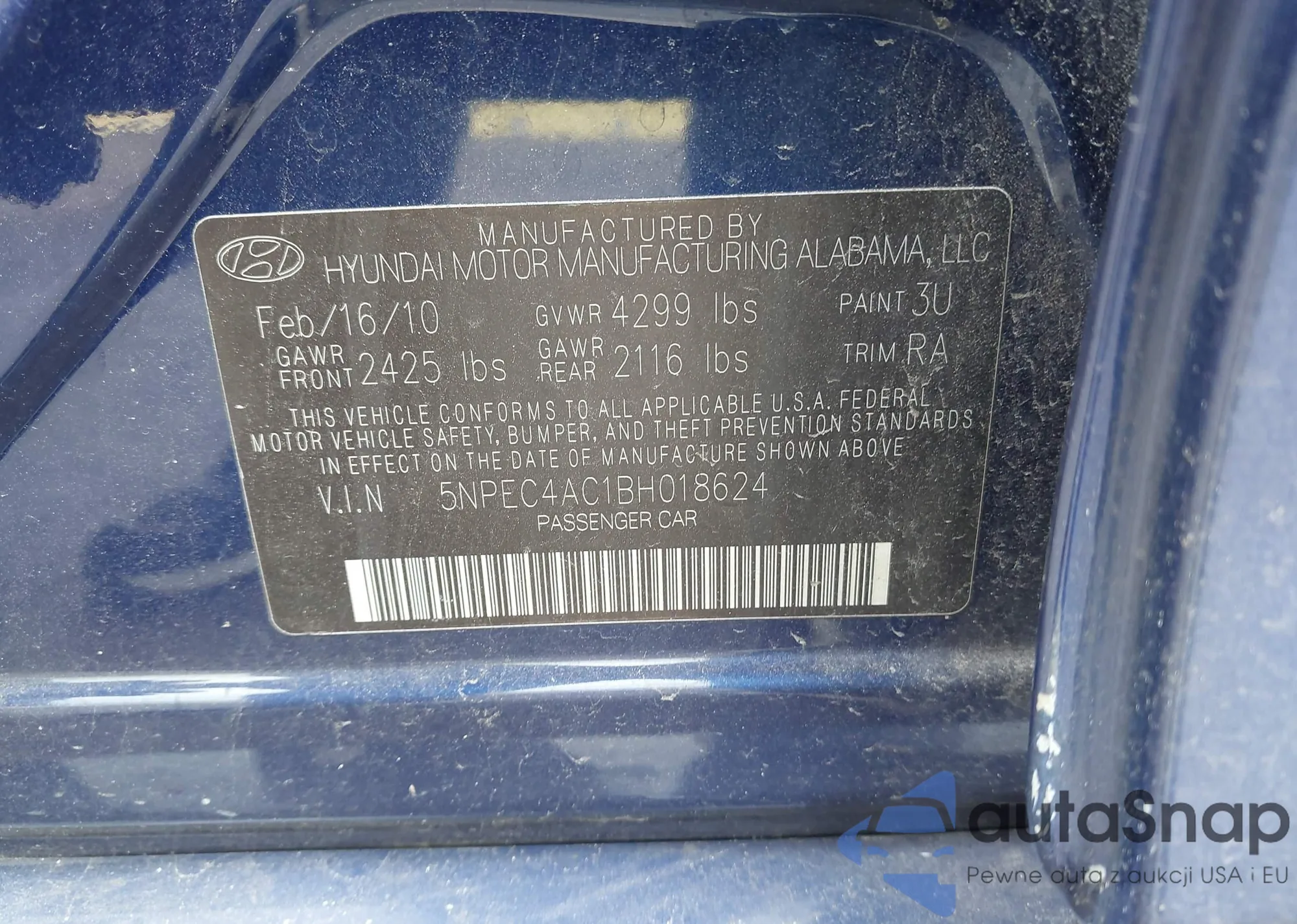 • VIN 5NPEC4AC1BH018624