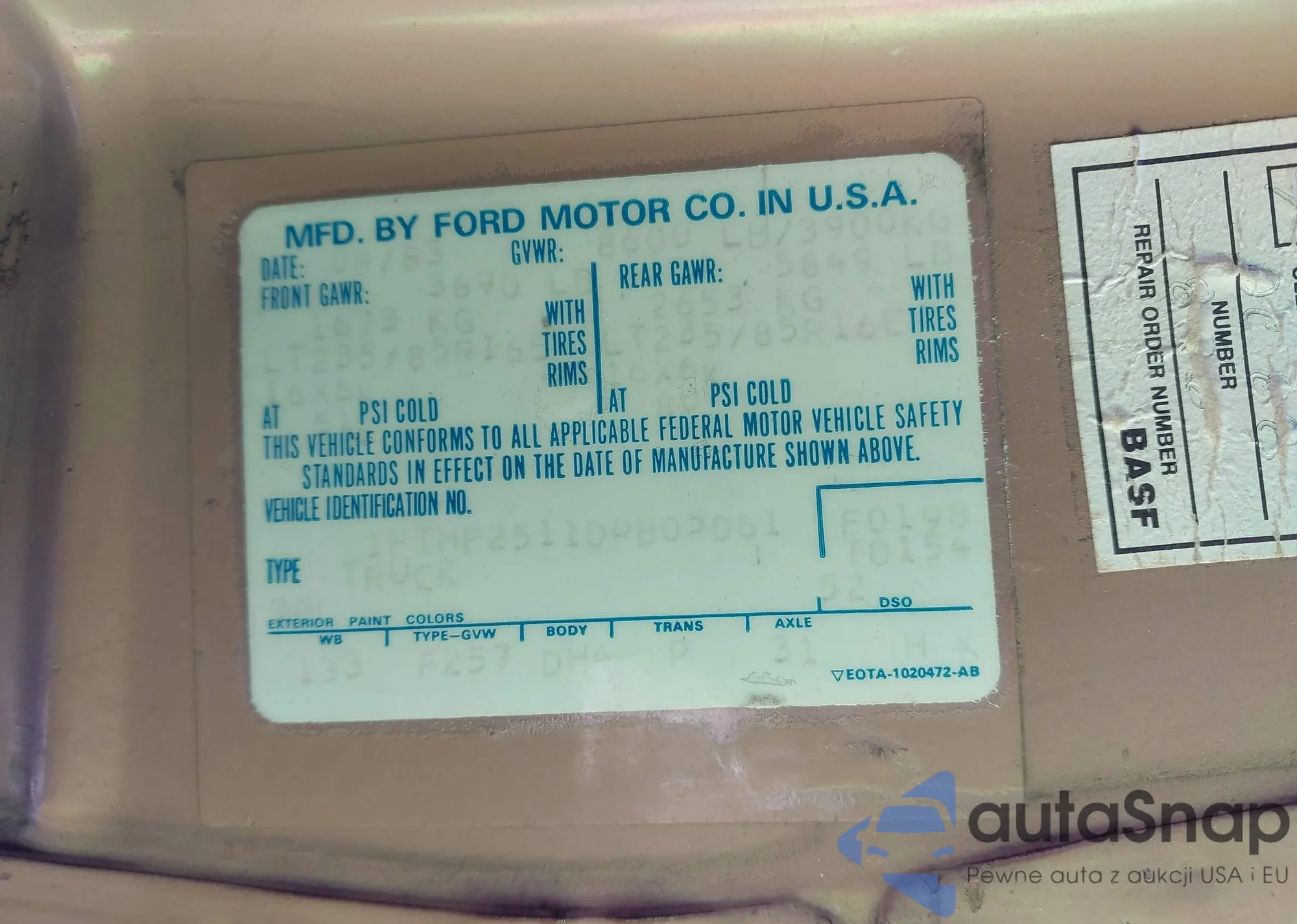 • VIN 1FTHF2511DPB05061