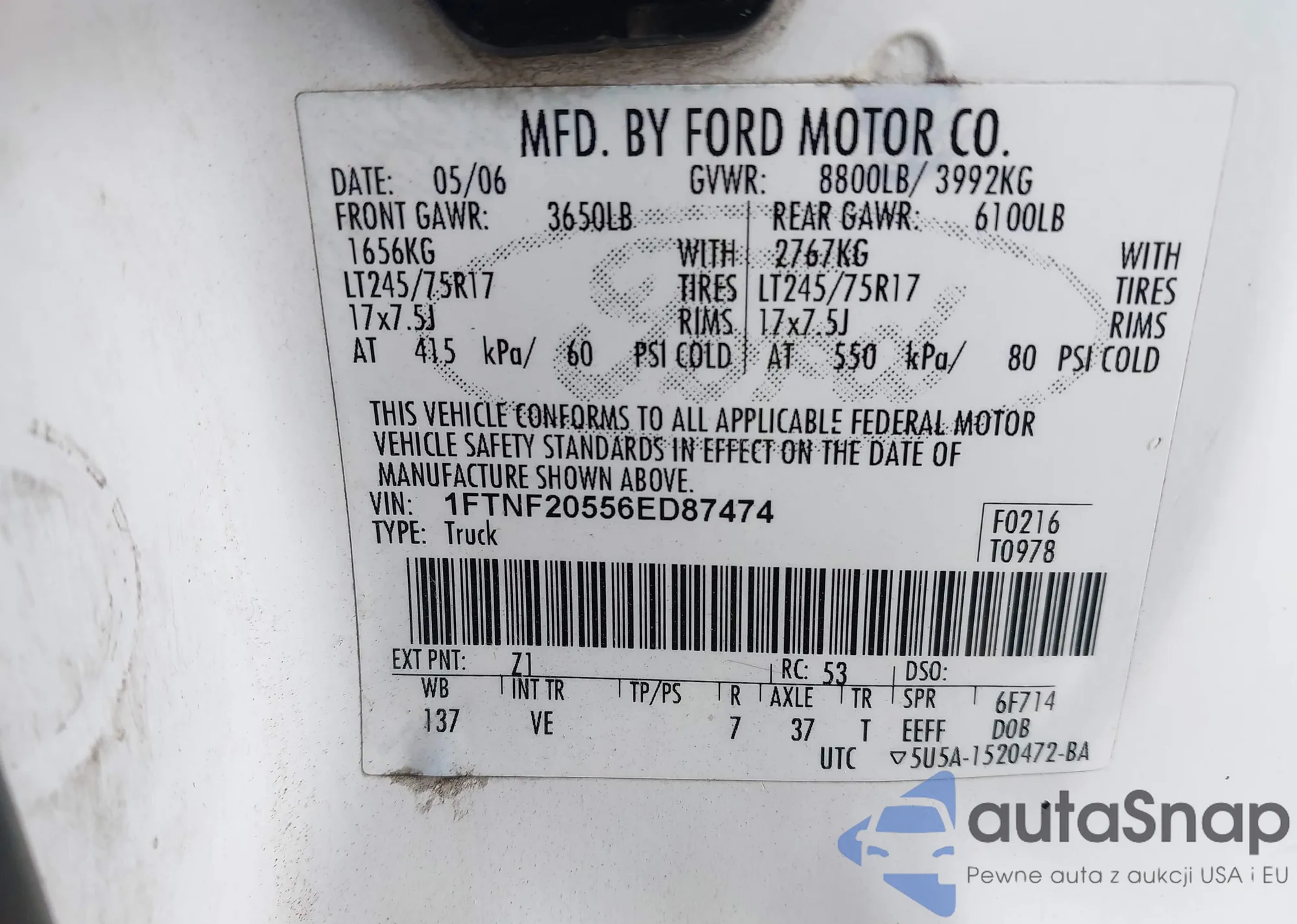 • VIN 1FTNF20556ED87474
