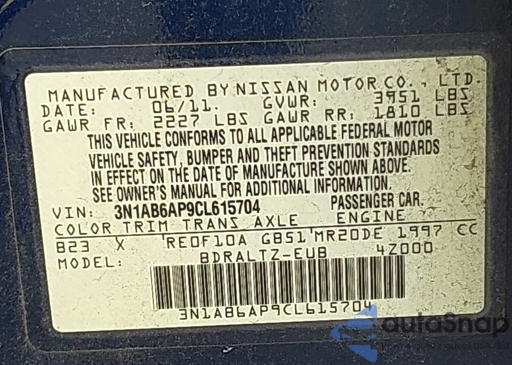 • VIN 3N1AB6AP9CL615704