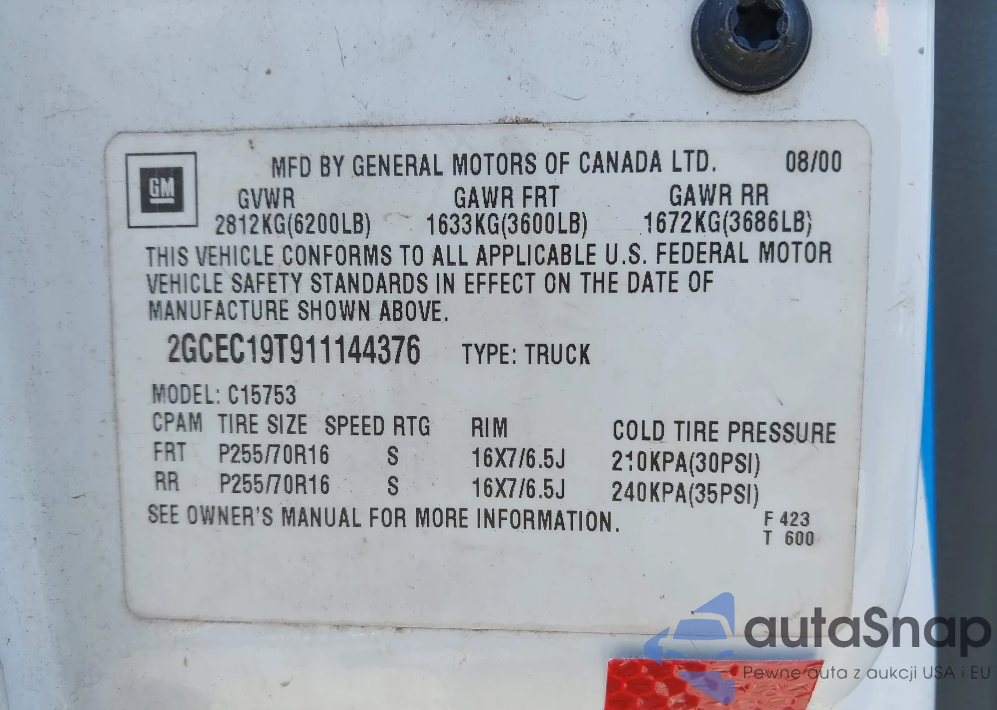 • VIN 2GB2CREG6K1140317