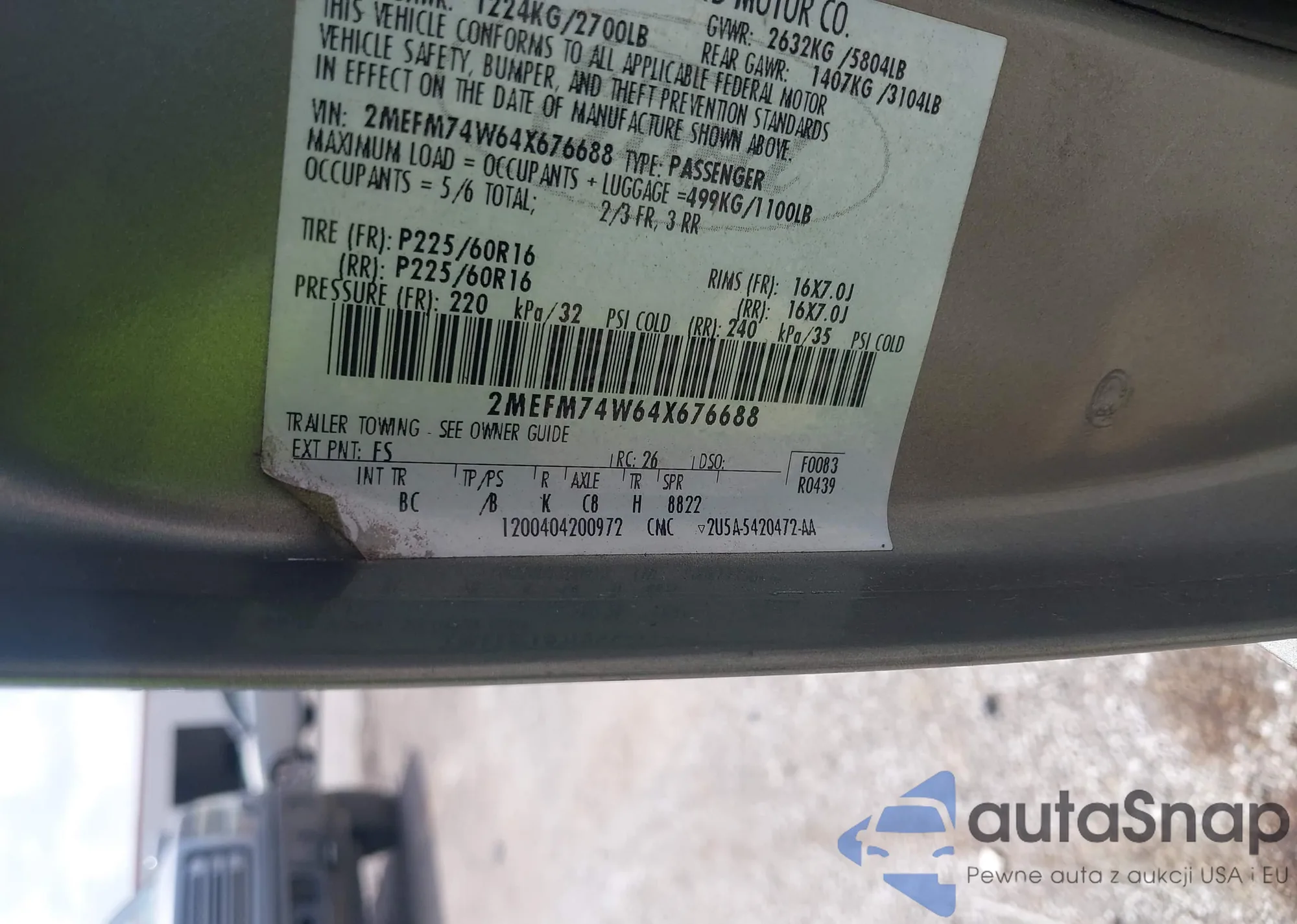 LOT: 42599946 VIN: 2MEFM74W64X676688