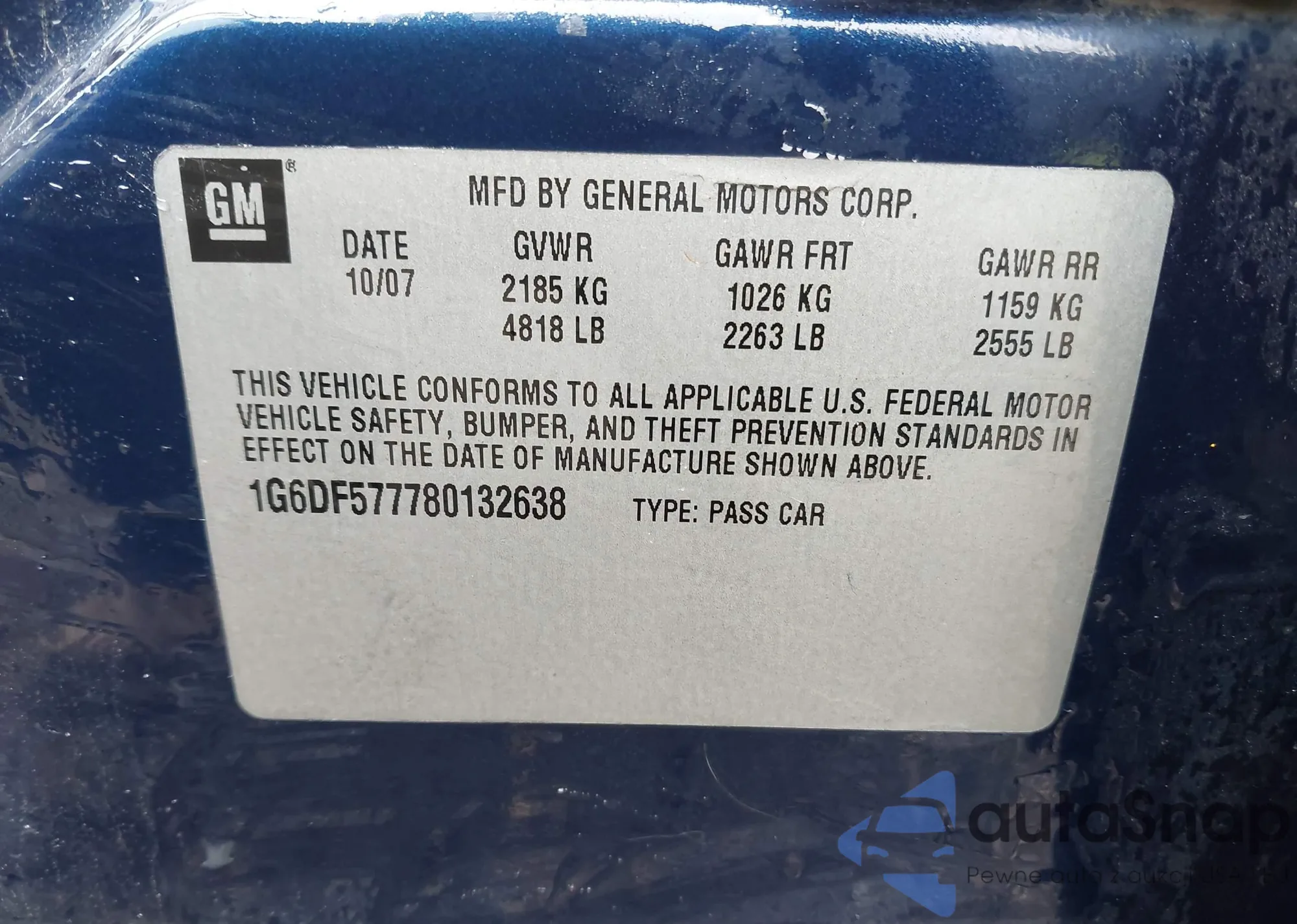 • VIN 1G6DF577780132638