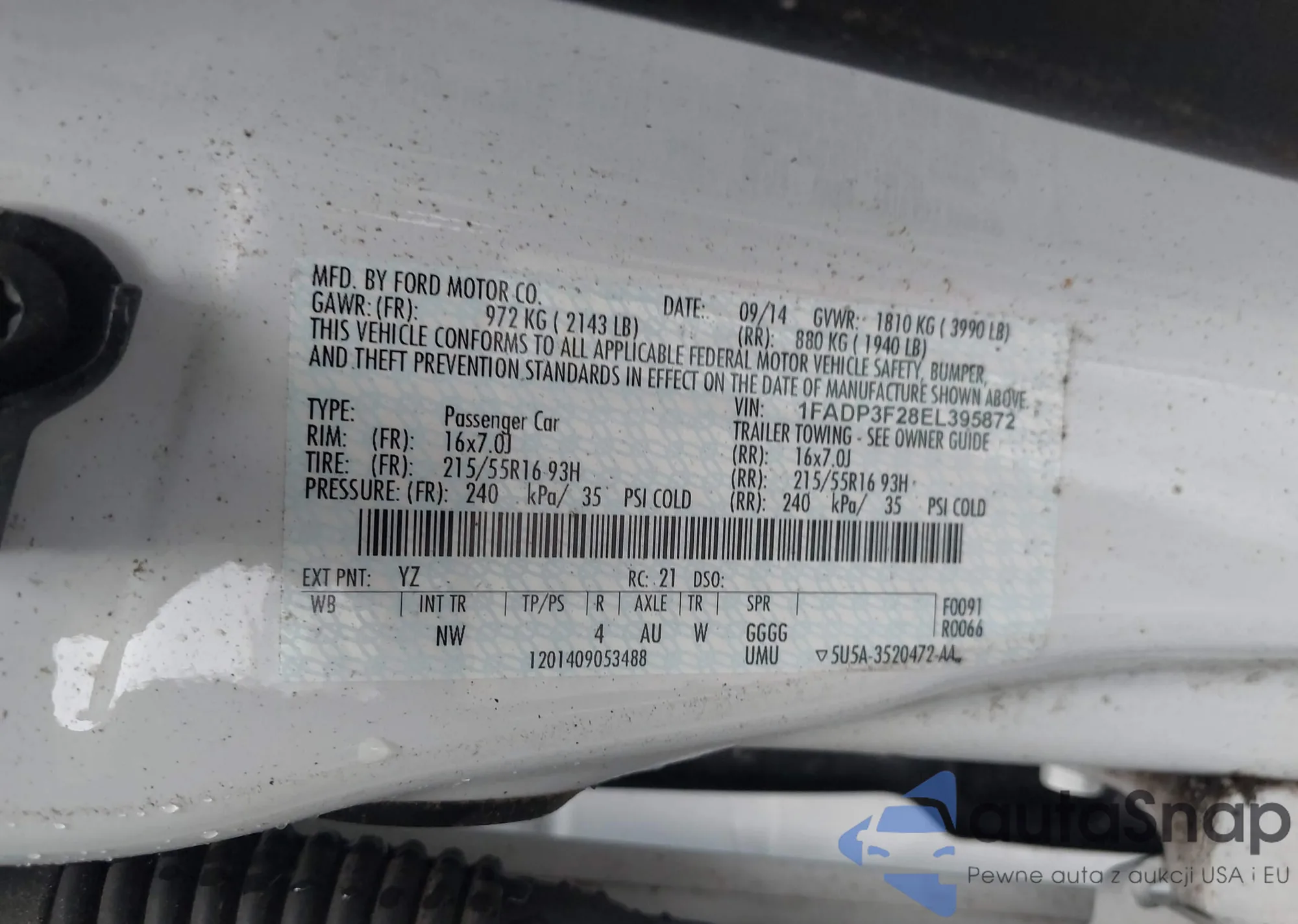 LOT: 39939404 VIN: 1FADP3F28EL395872