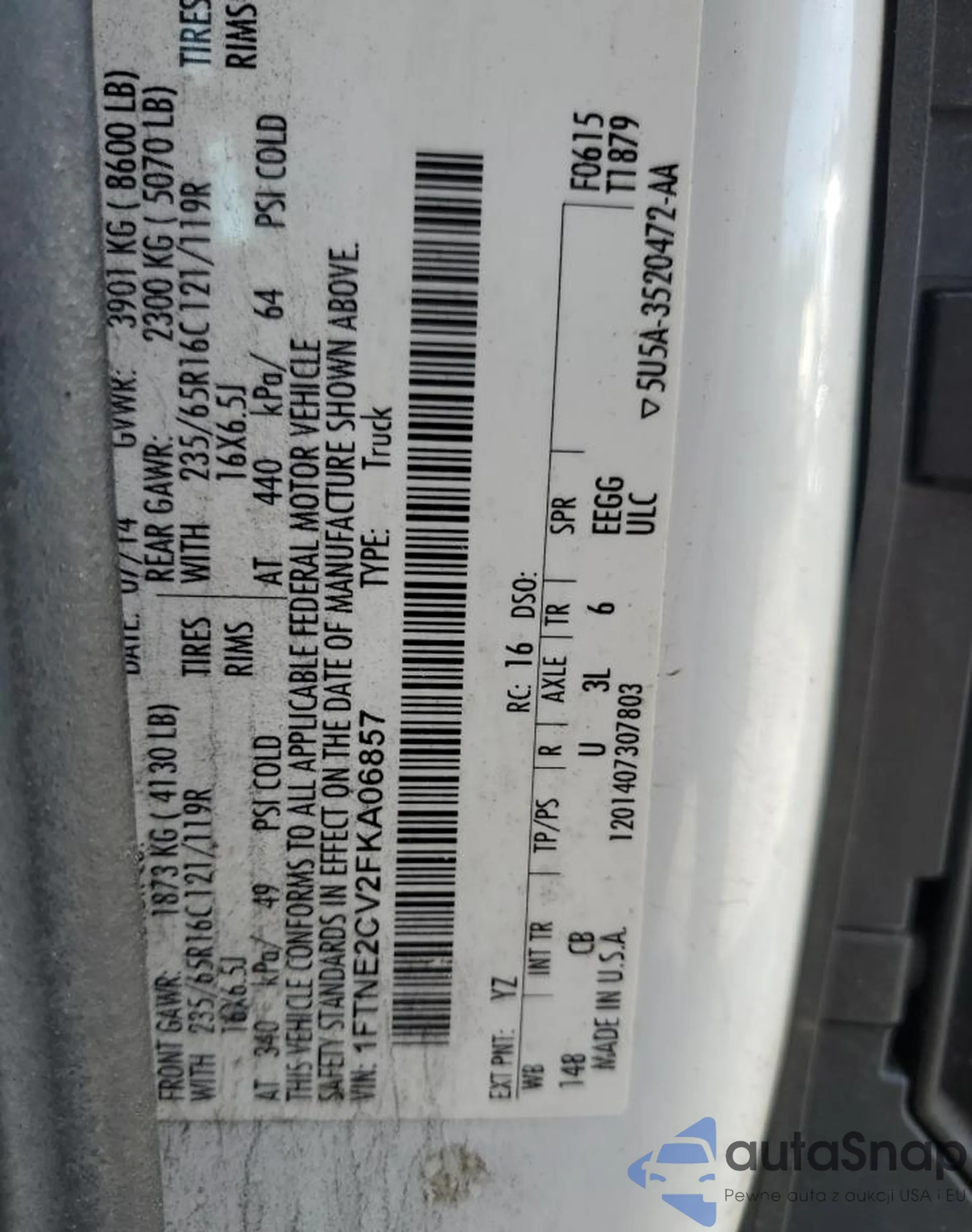• VIN 1FTNE2CV2FKA06857