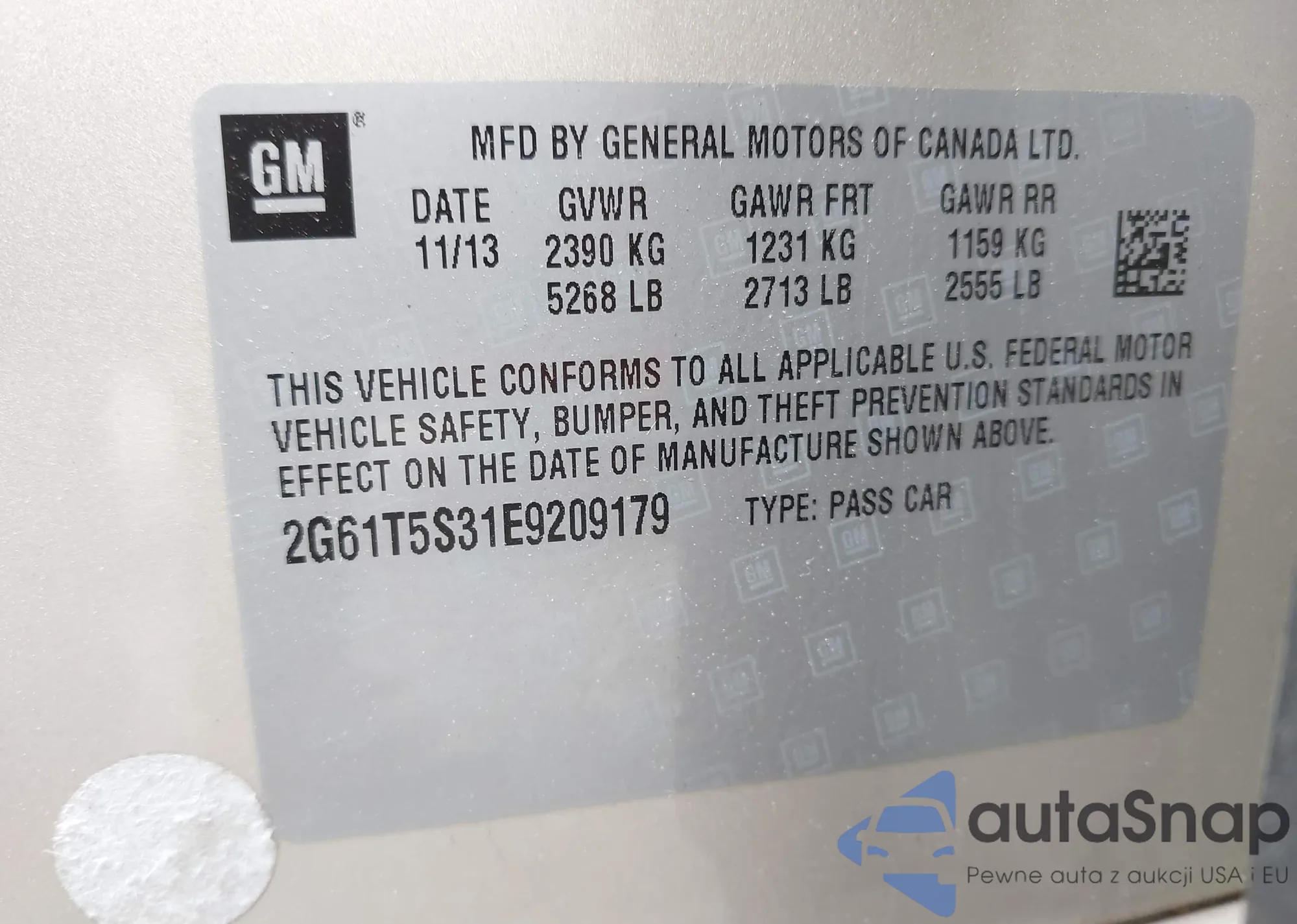 LOT: 42241440 VIN: 2G61T5S31E9209179