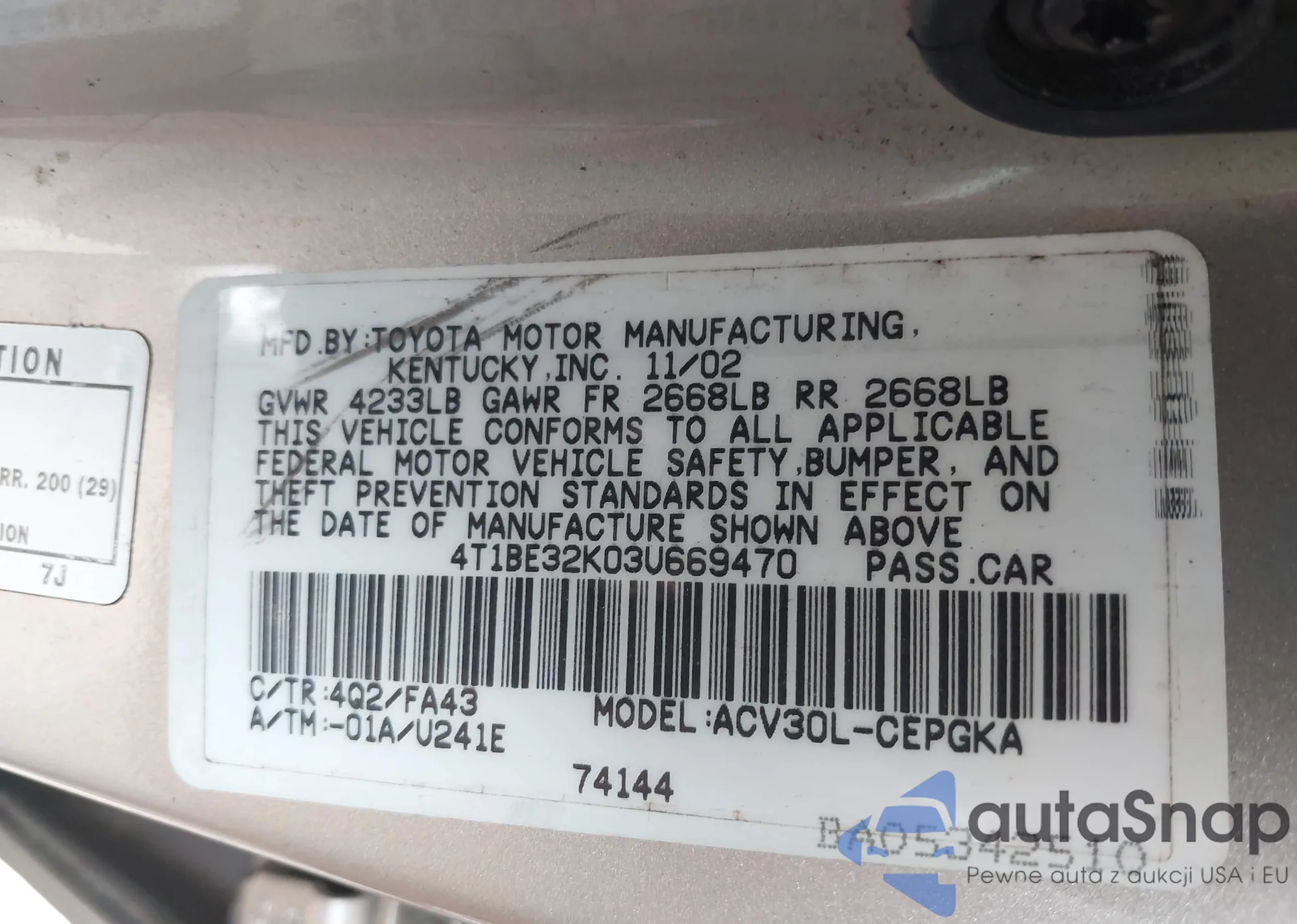 LOT: 42309451 VIN: 1NXBR32E36Z693555