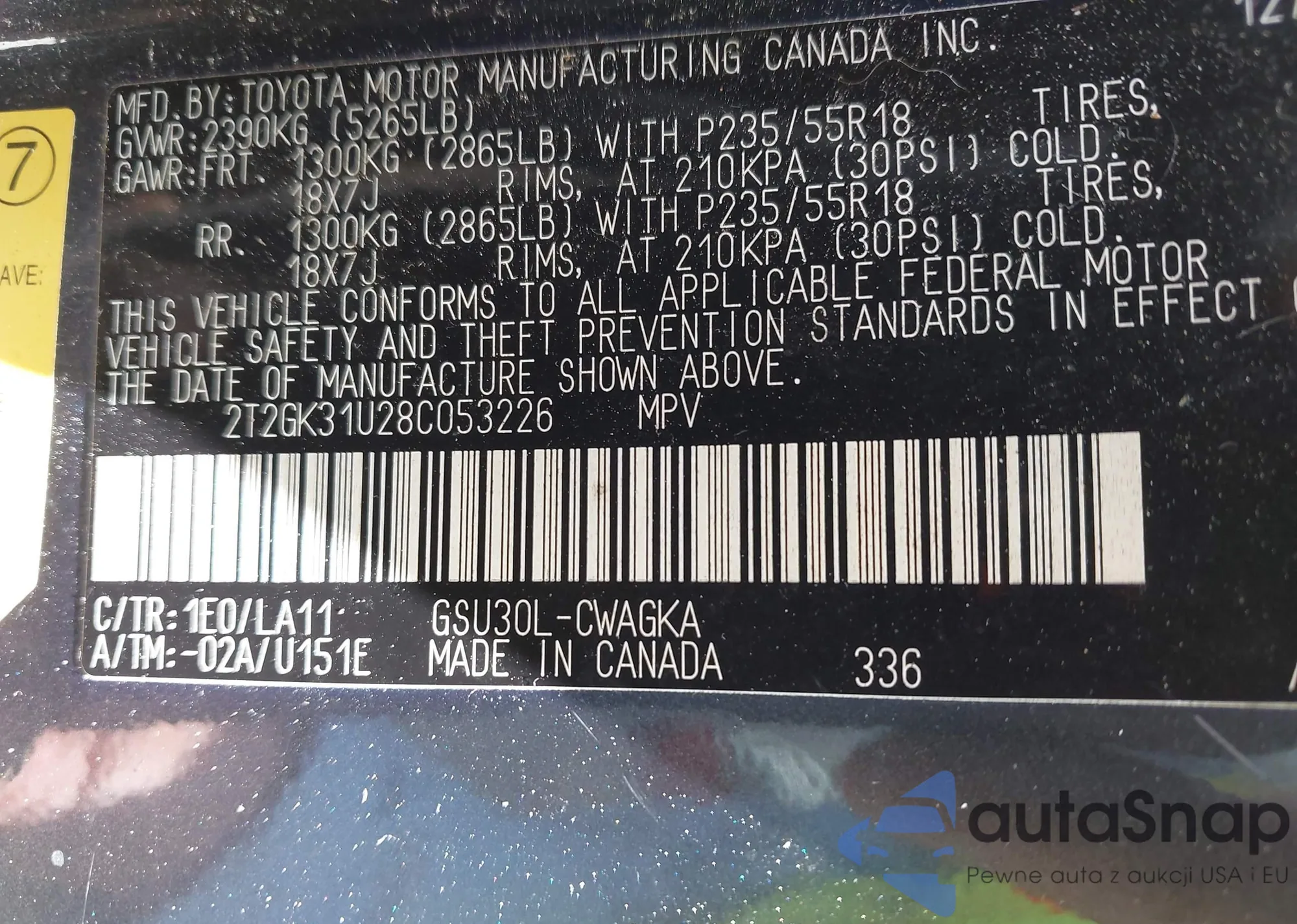LOT: 42446557 VIN: 2T2GK31U28C053226