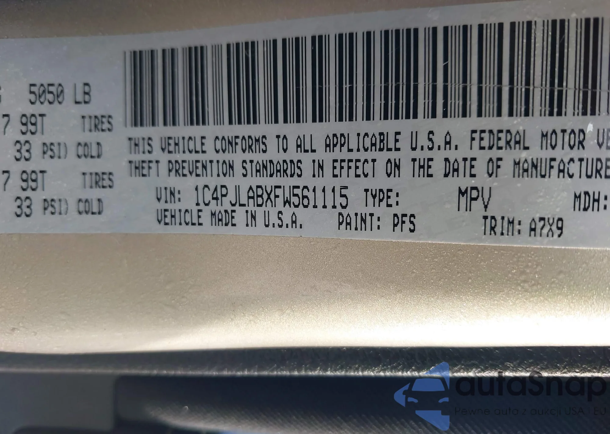 LOT: 41969932 VIN: 1C4PJLABXFW561115