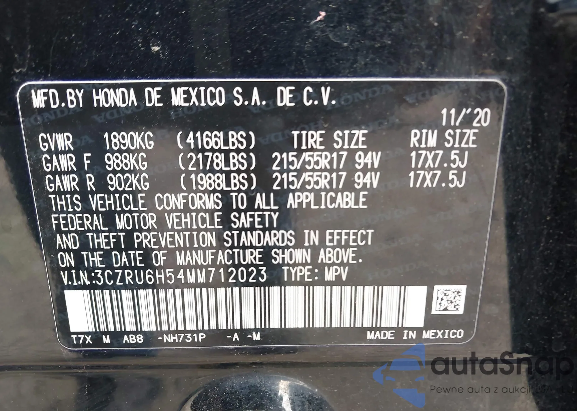 • VIN 3CZRU6H54MM712023