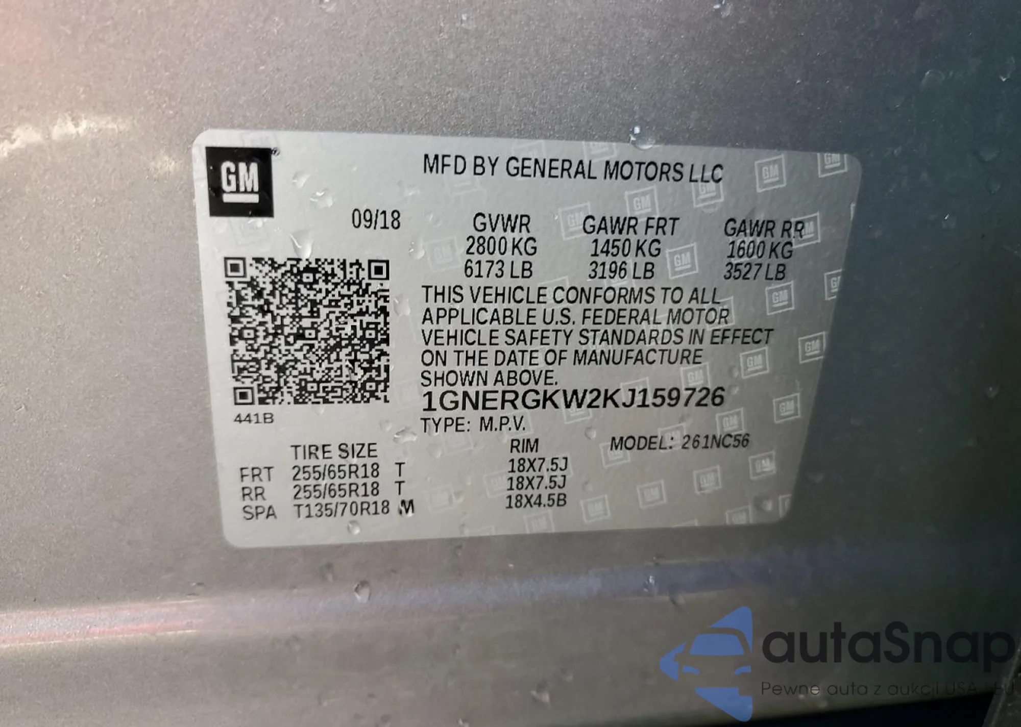 LOT: 55594205 VIN: 1GNERGKW2KJ159726