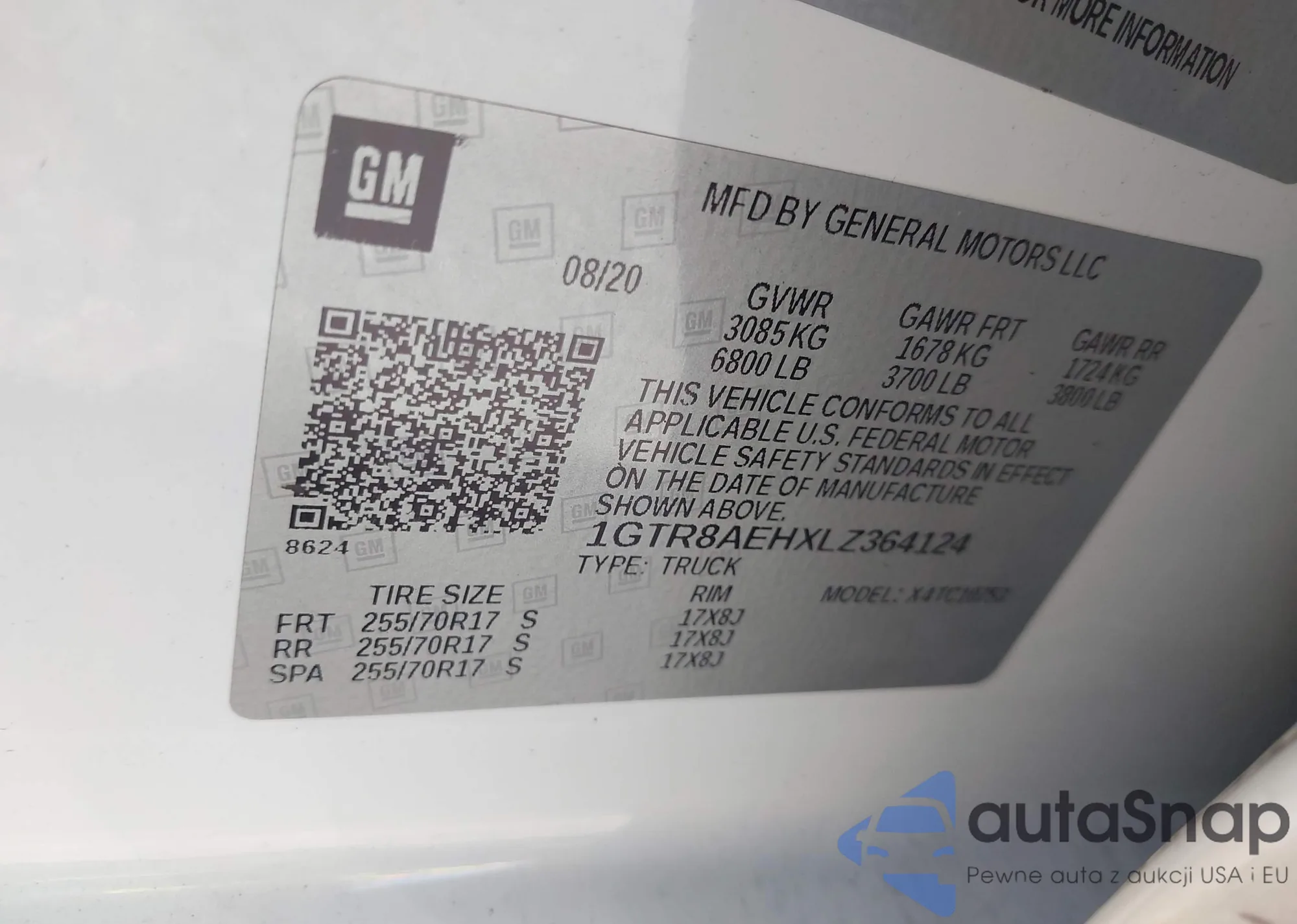 • VIN 1GTR8AEHXLZ364124