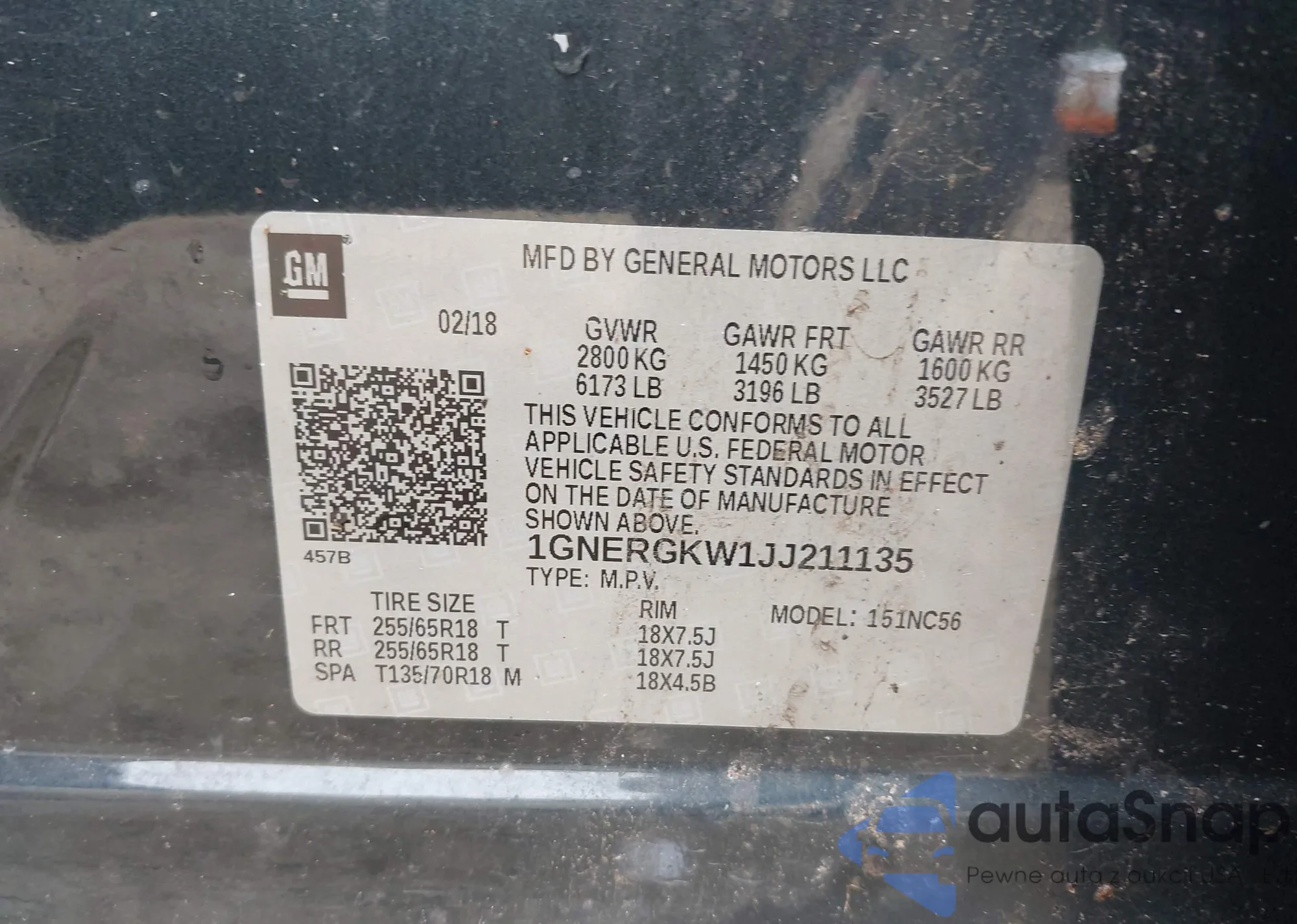 LOT: 42278217 VIN: 1GNERGKW1JJ211135