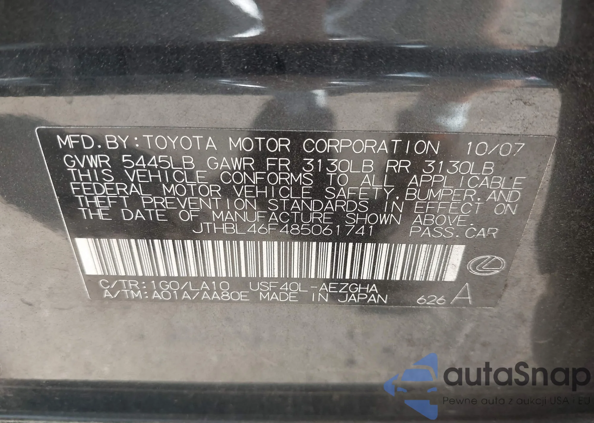LOT: 42271240 VIN: JTEBT17R168035498
