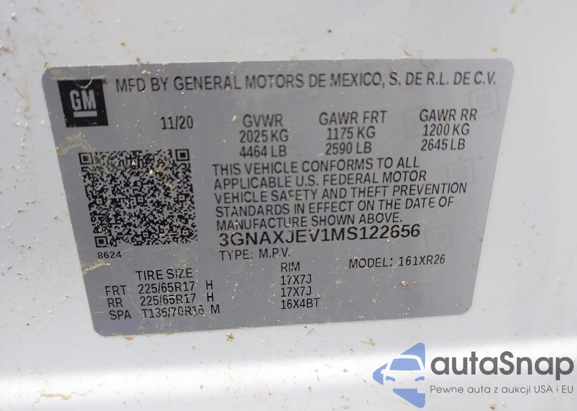 LOT: 42238927 VIN: 3GNAXJEV1MS122656
