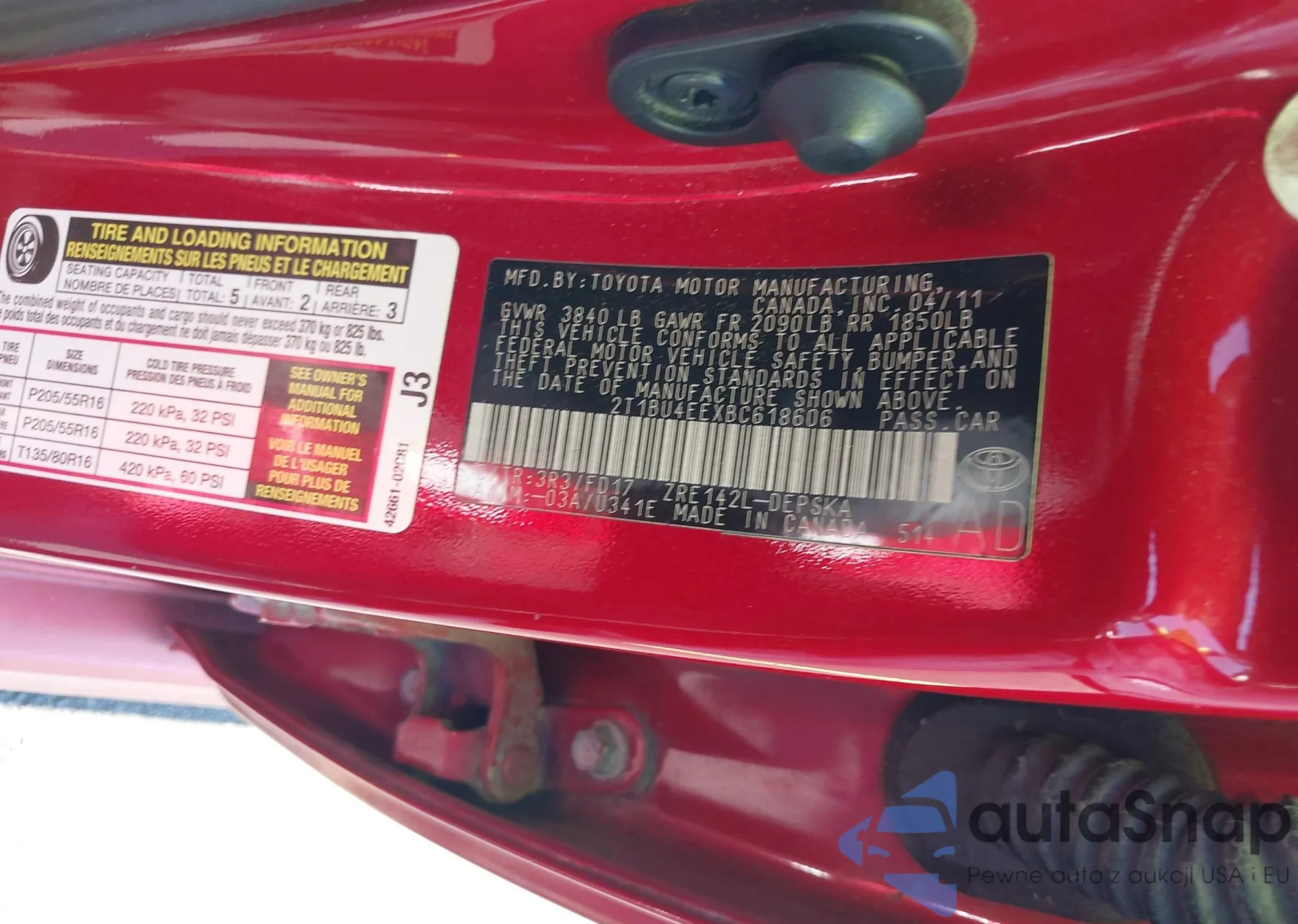 • VIN 2T1BU4EEXBC618606