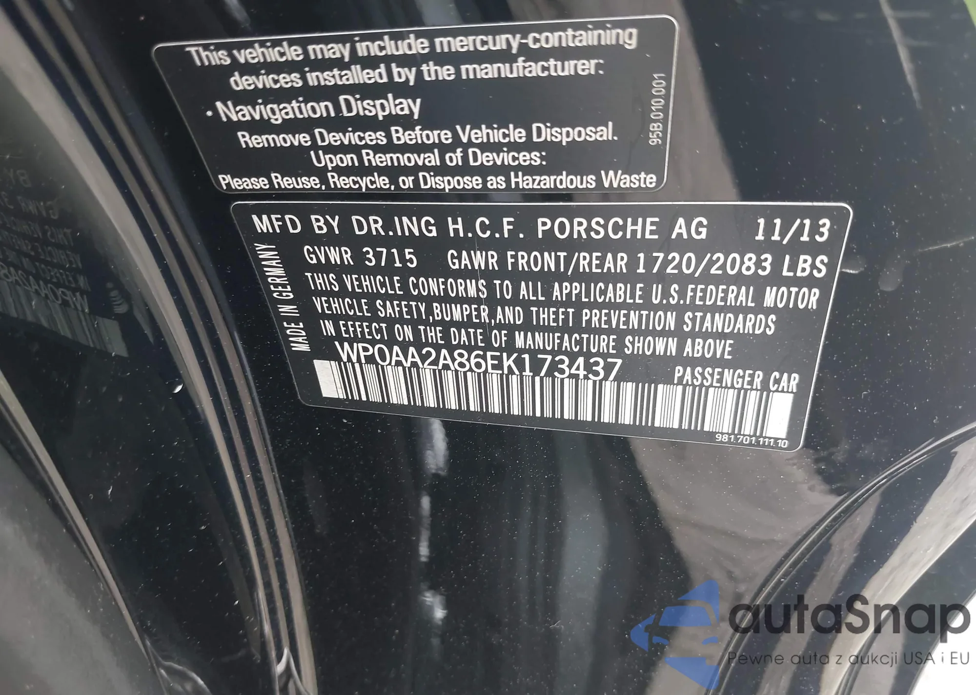 • VIN WP0AA2A86EK173437