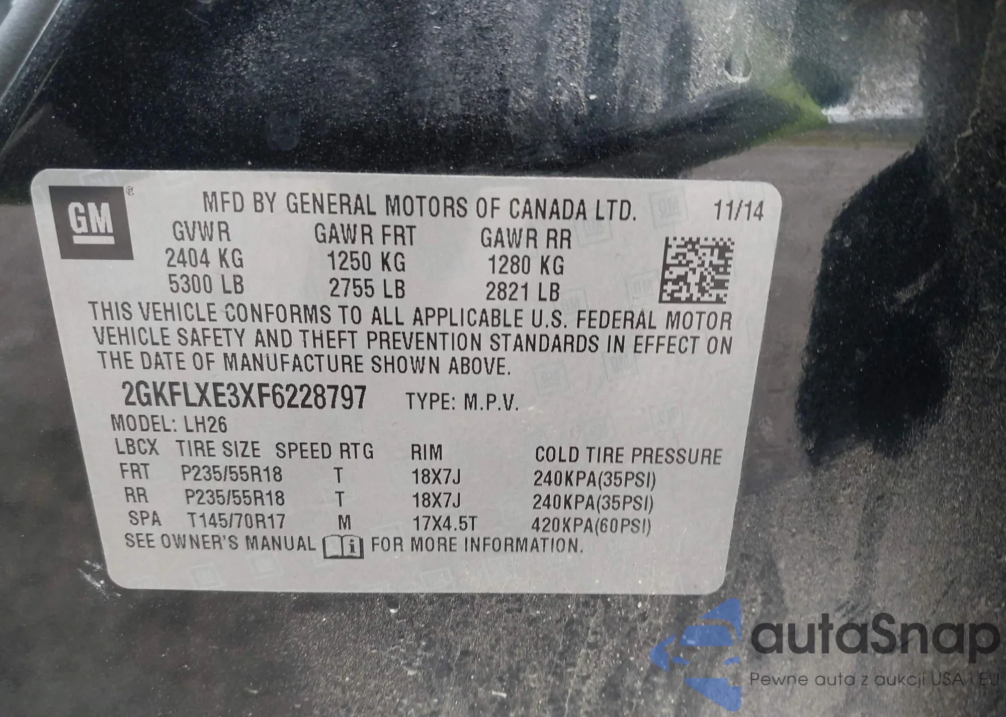 • VIN 2GKFLXE3XF6228797