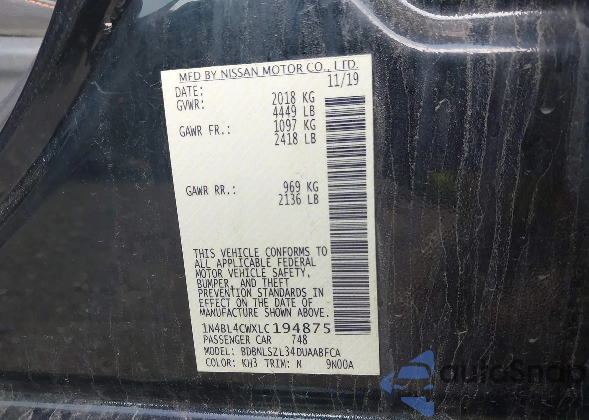 LOT: 42442757 VIN: 1N4BL4CWXLC194875