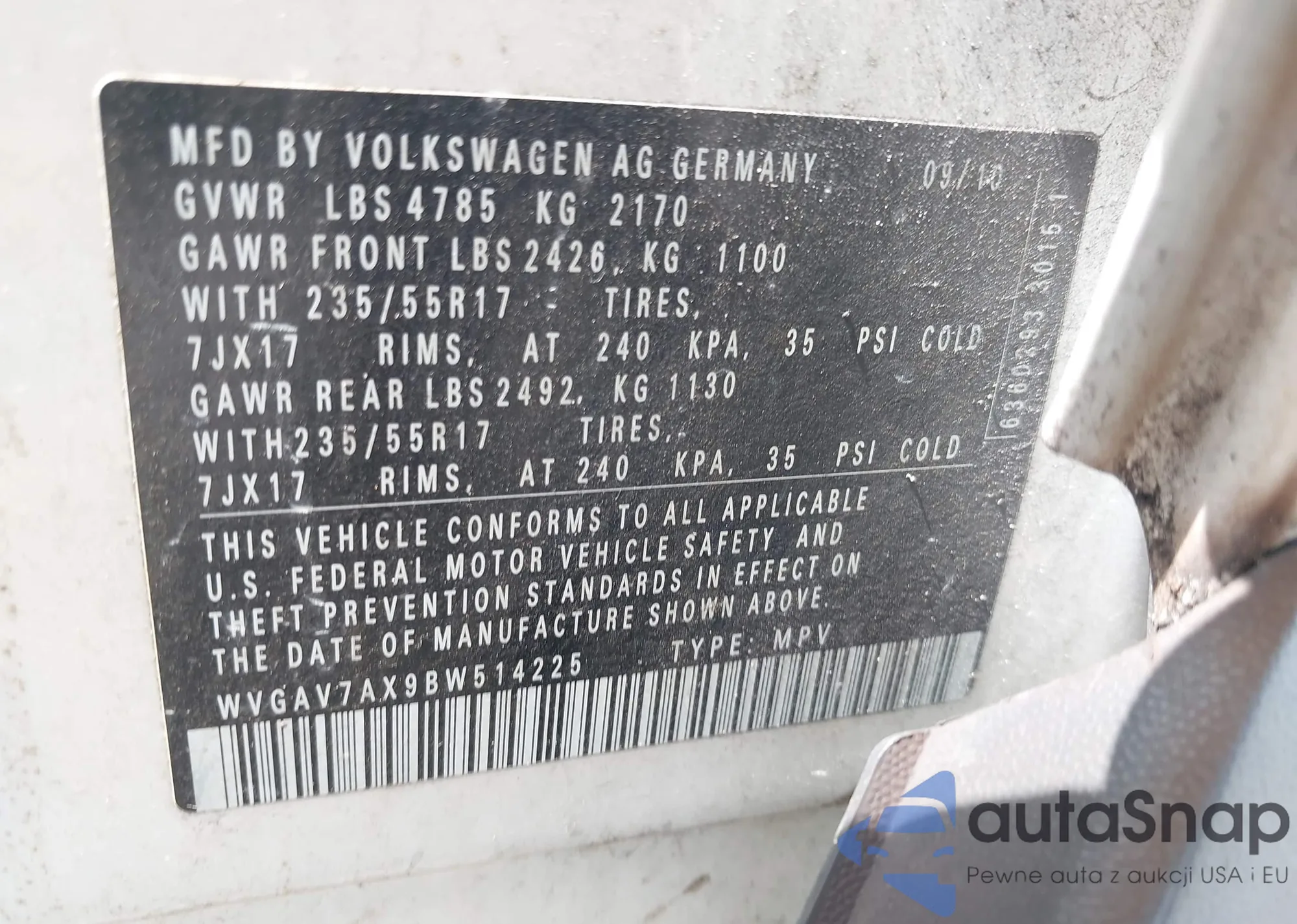 • VIN WVGAV7AX9BW514225