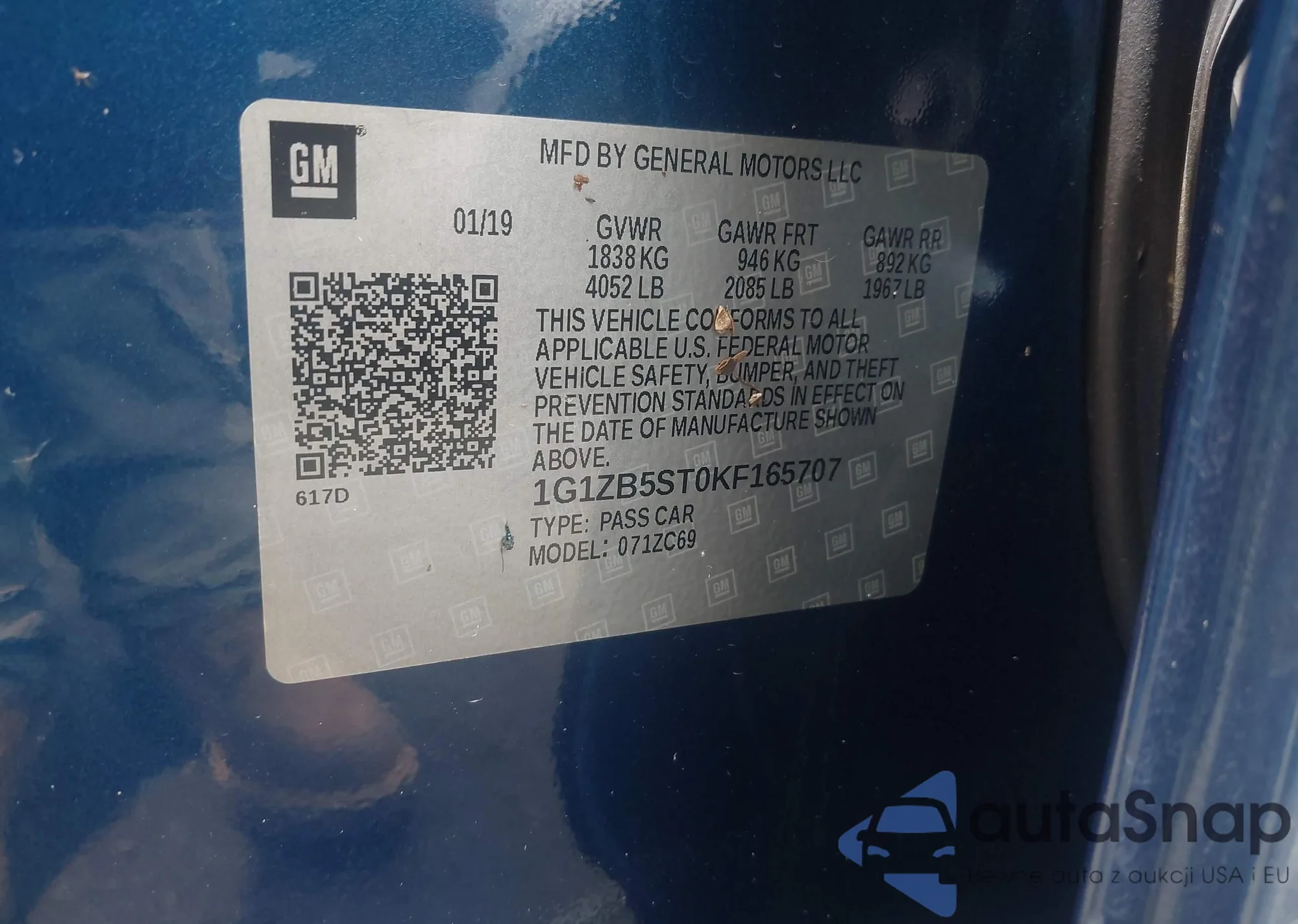 LOT: 42463283 VIN: 1G1ZB5ST0KF165707