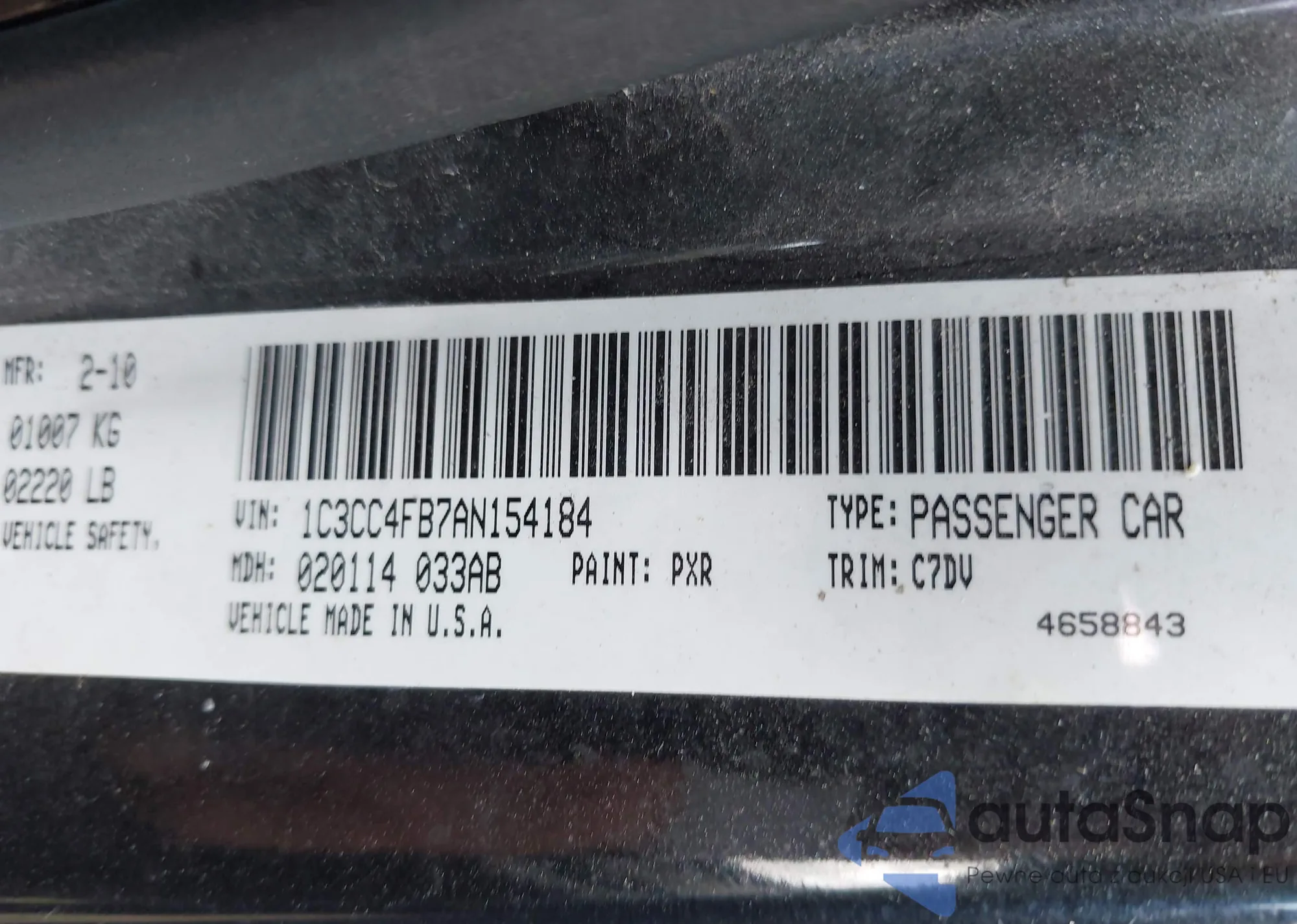 • VIN 1HGCP2F79CA069844
