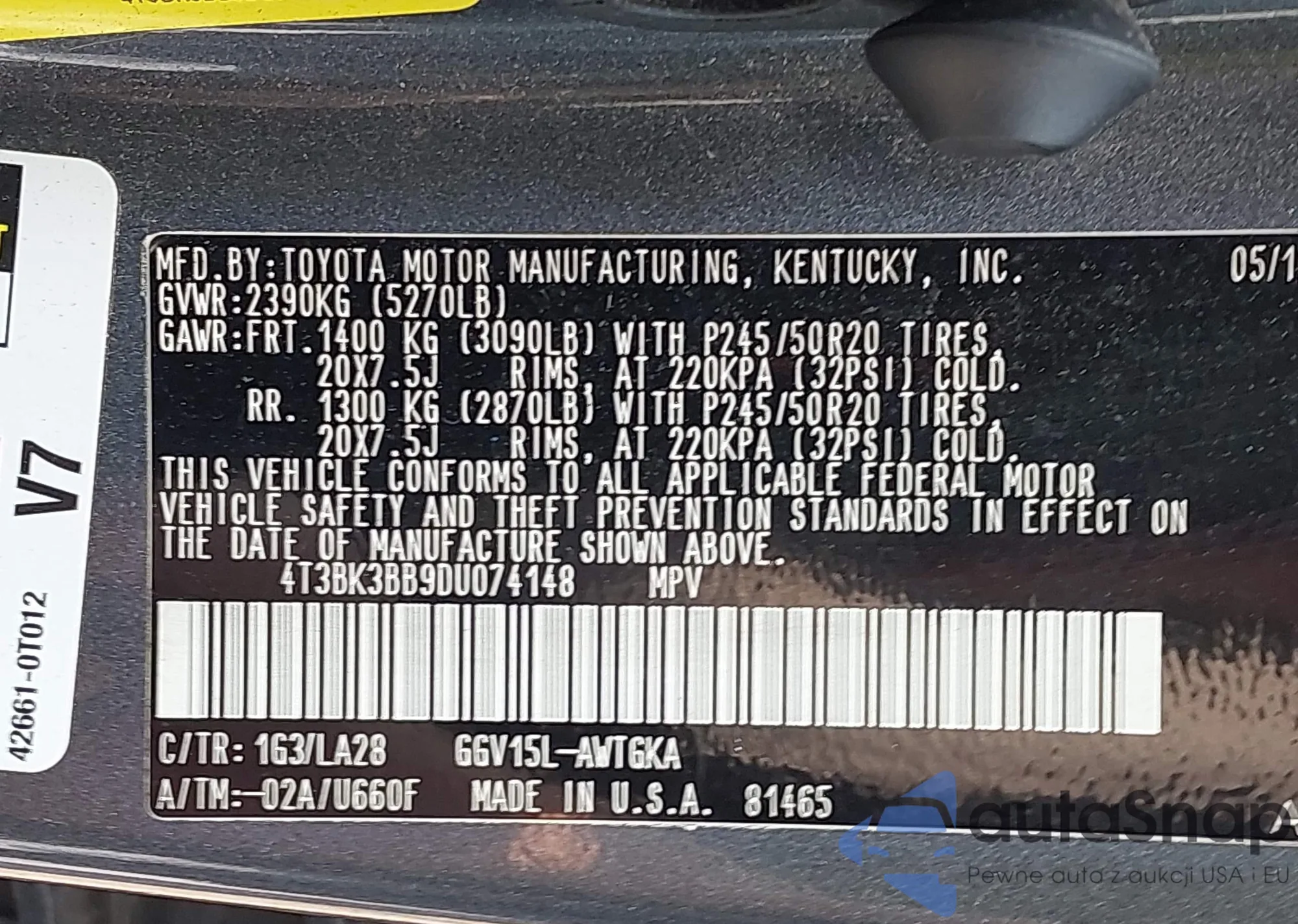 LOT: 42481989 VIN: 4T3BK3BB9DU074148