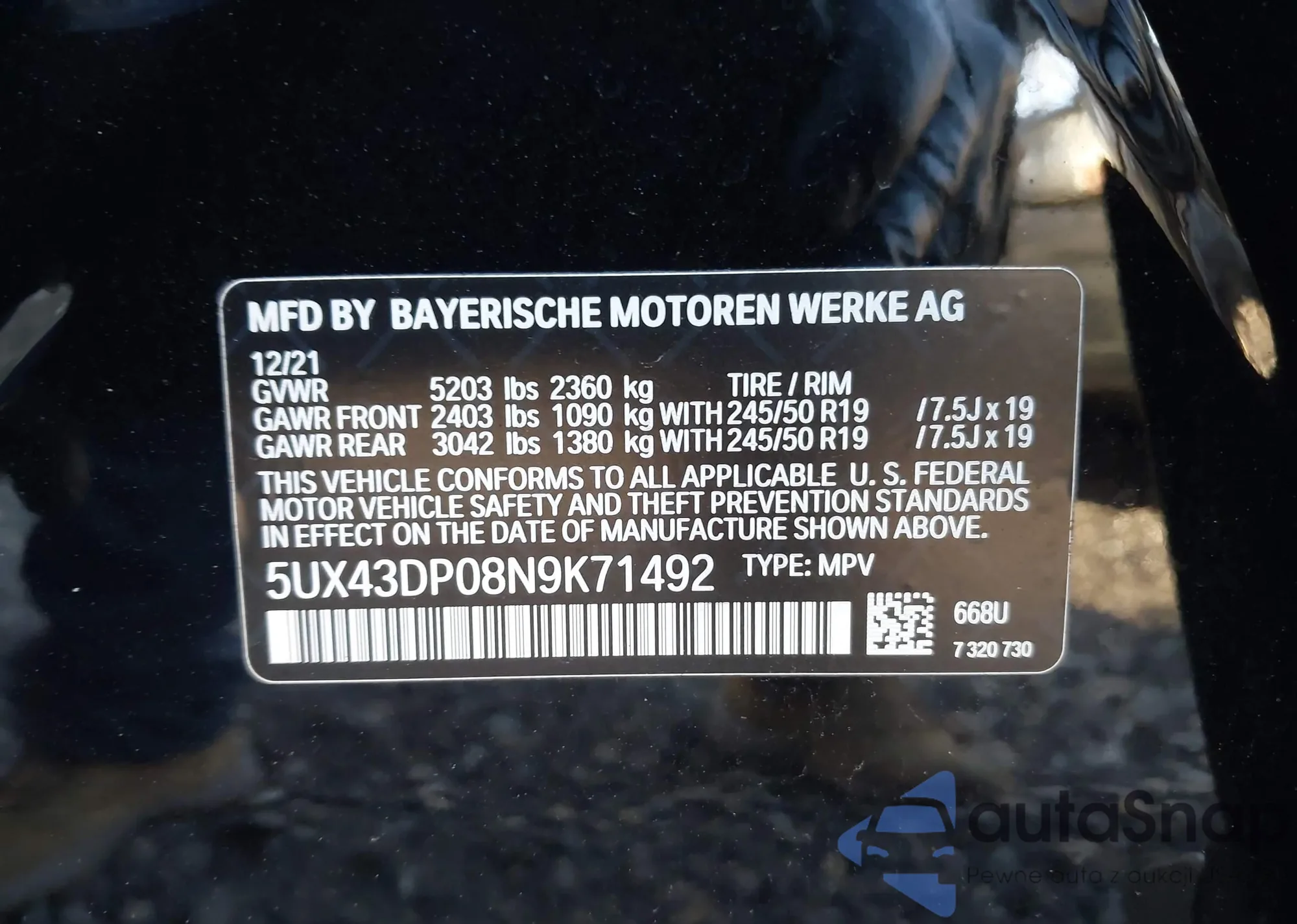 • VIN 5UX43DP08N9K71492