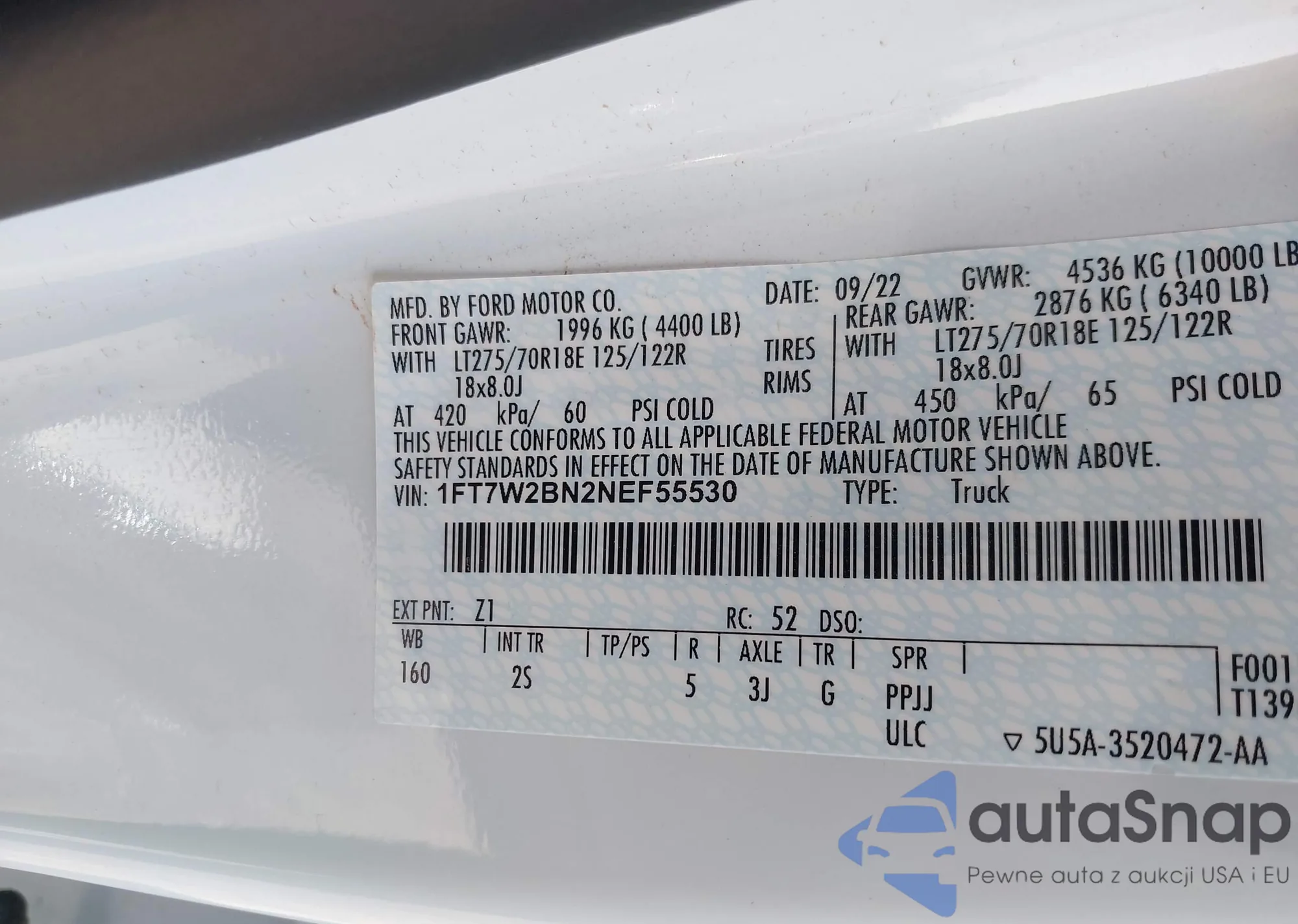 LOT: 42517658 VIN: 1FT7W2BN2NEF55530