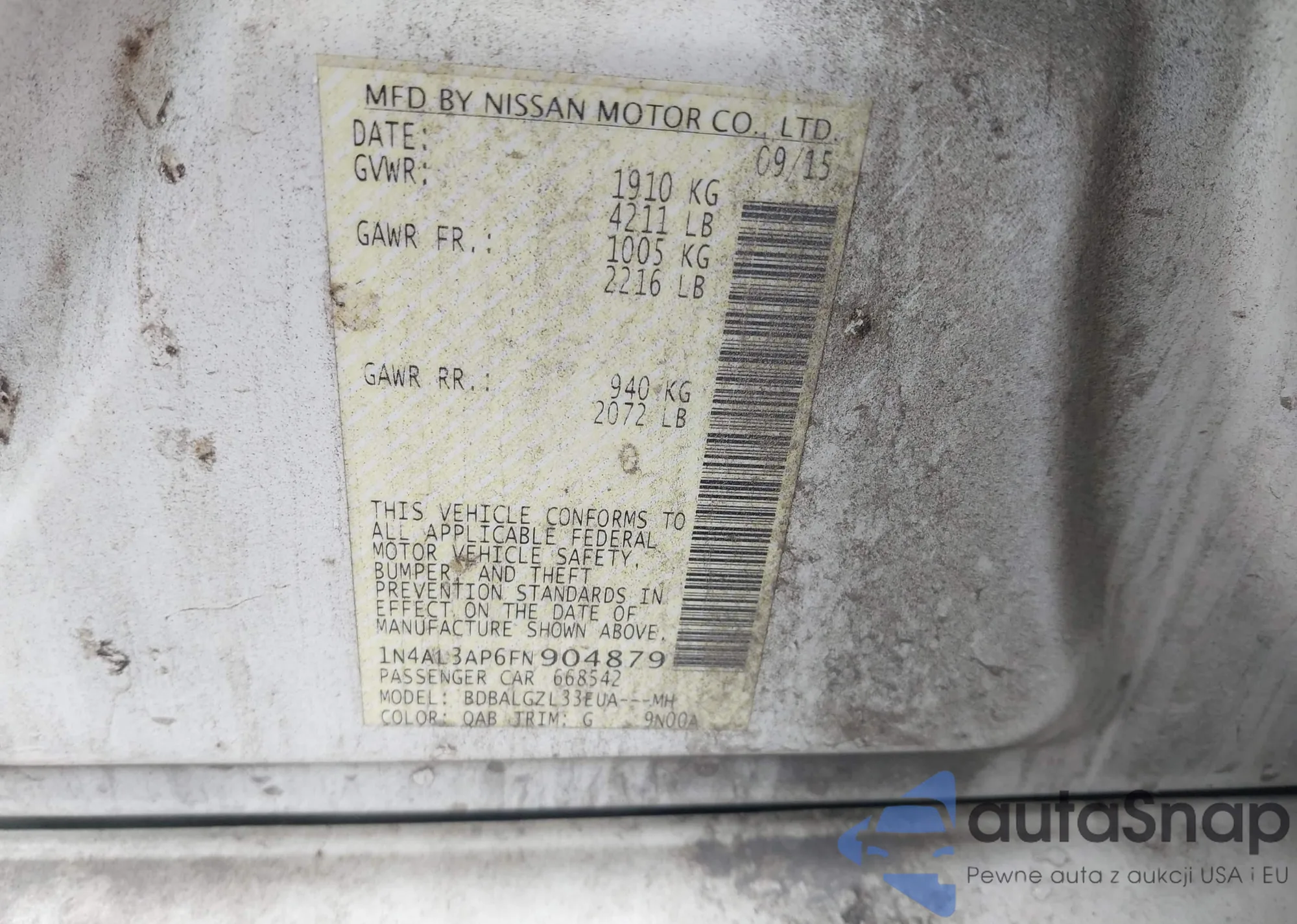 • VIN 1N4AL3AP6FN904879