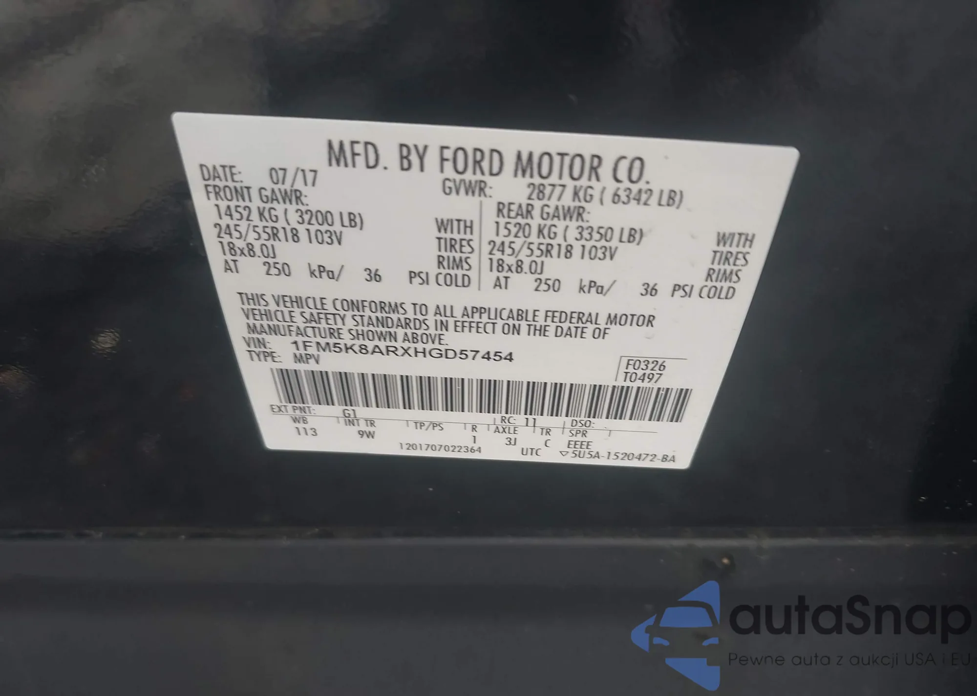 • VIN 1FM5K8ARXHGD57454