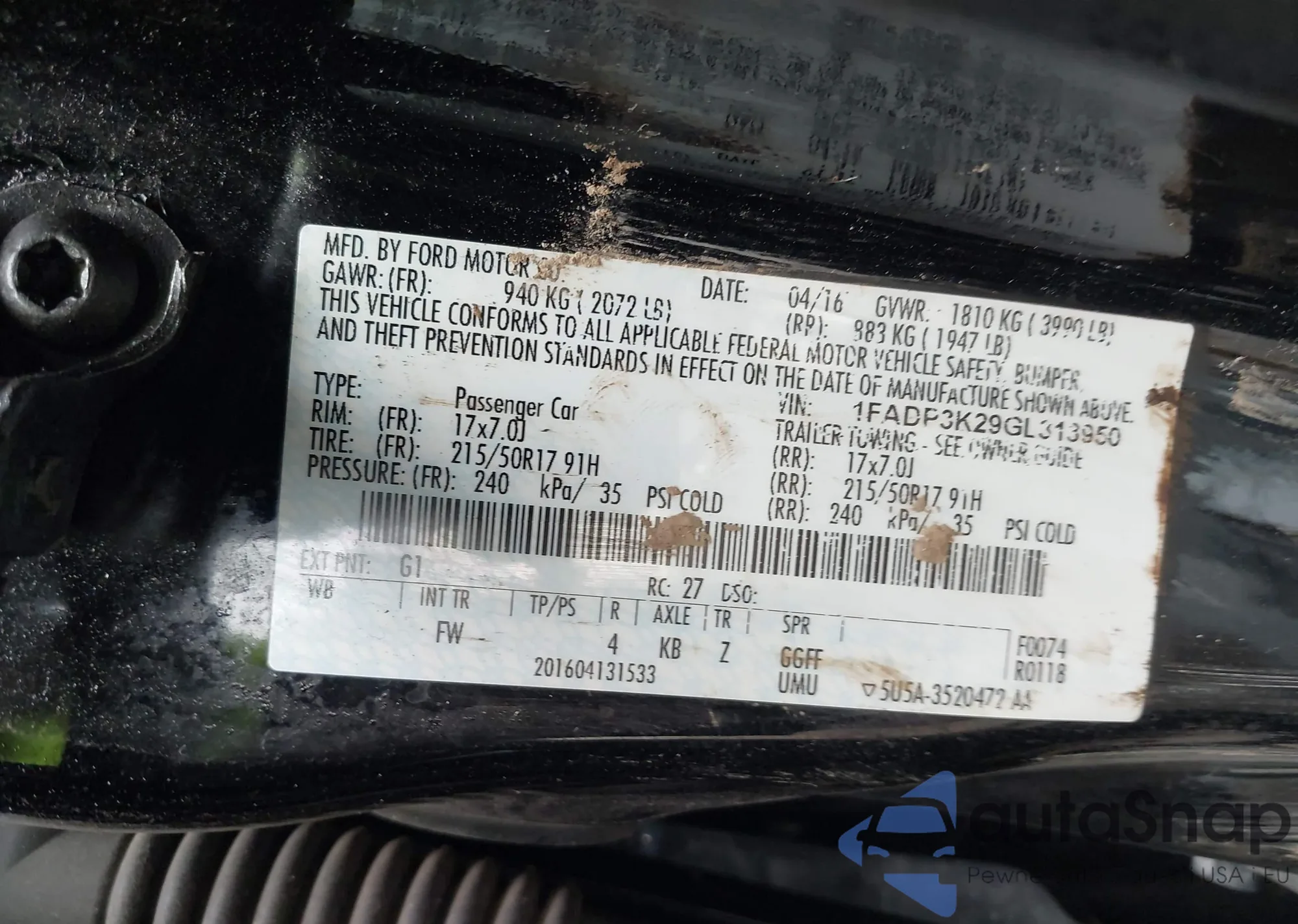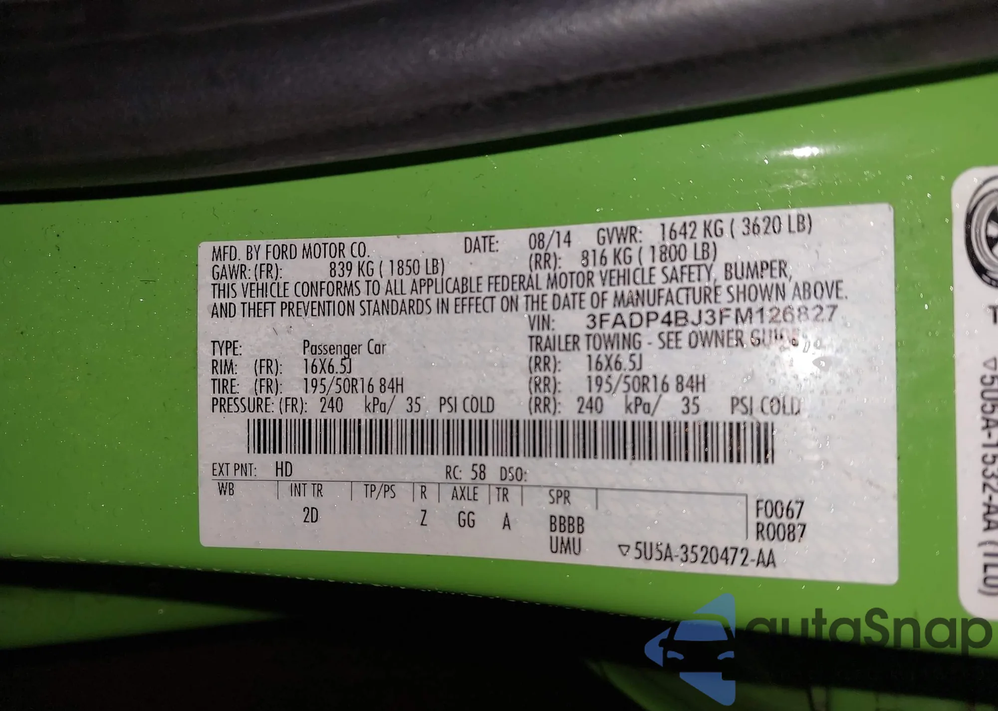LOT: 42323329 VIN: 3FADP4BJ3FM126827