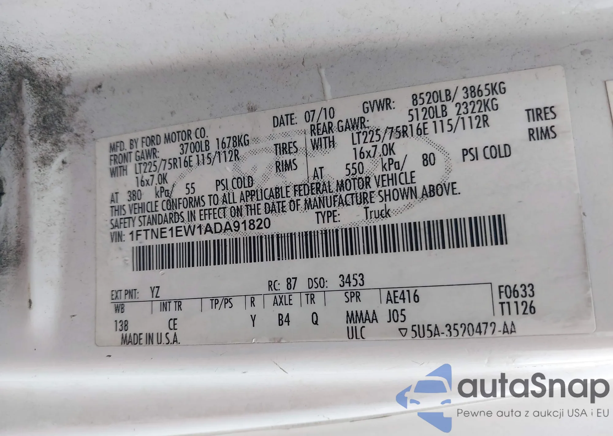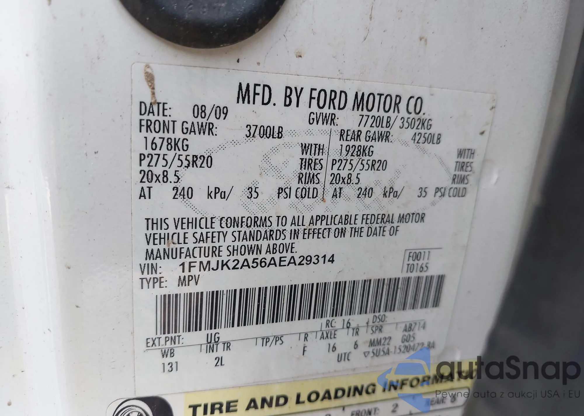 LOT: 42421739 VIN: 1FMJK2A56AEA29314