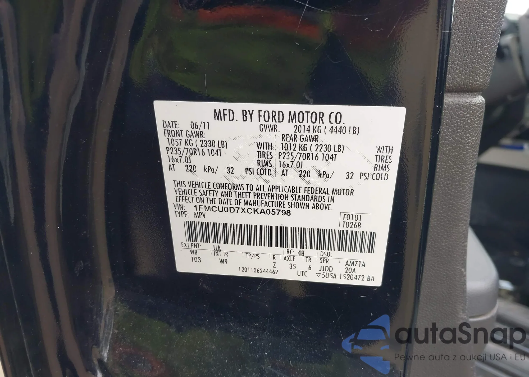 • VIN 1FMCU0D7XCKA05798